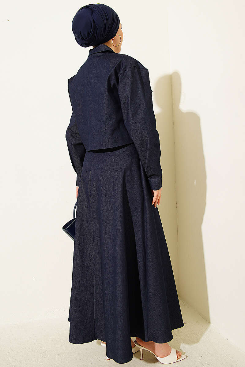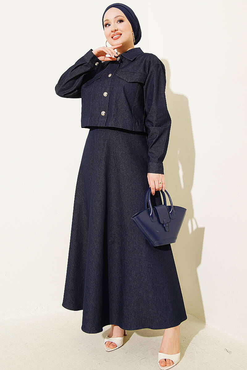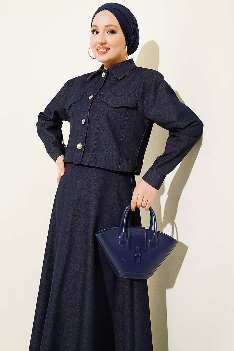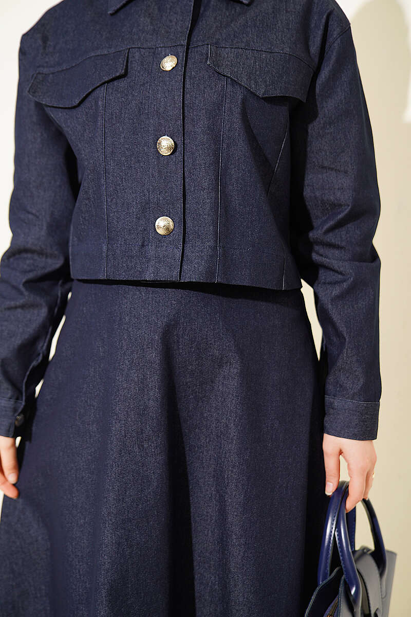 Metal Düğmeli Ceketli Kot Jile Takım Lacivert