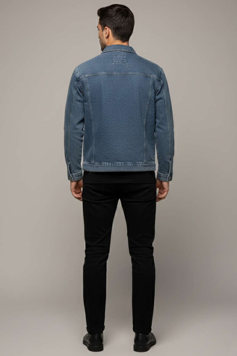 Metal Düğmeli Cepli Kot Erkek Ceket Mavi