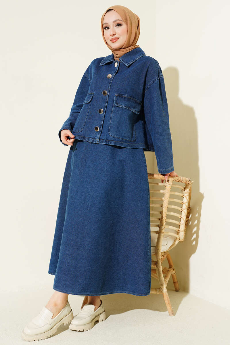 Gold Düğmeli Garnili Salaş İkili Takım Lacivert