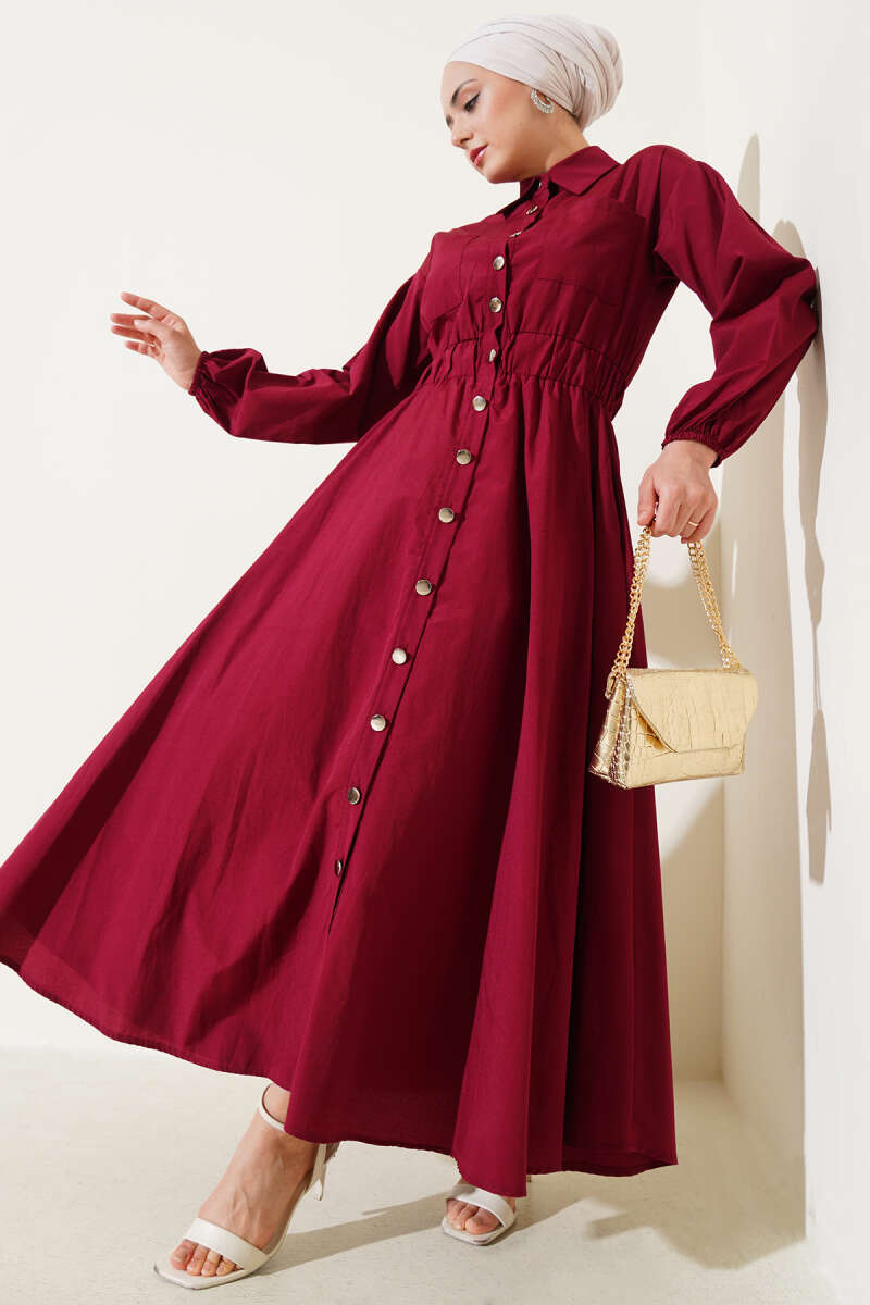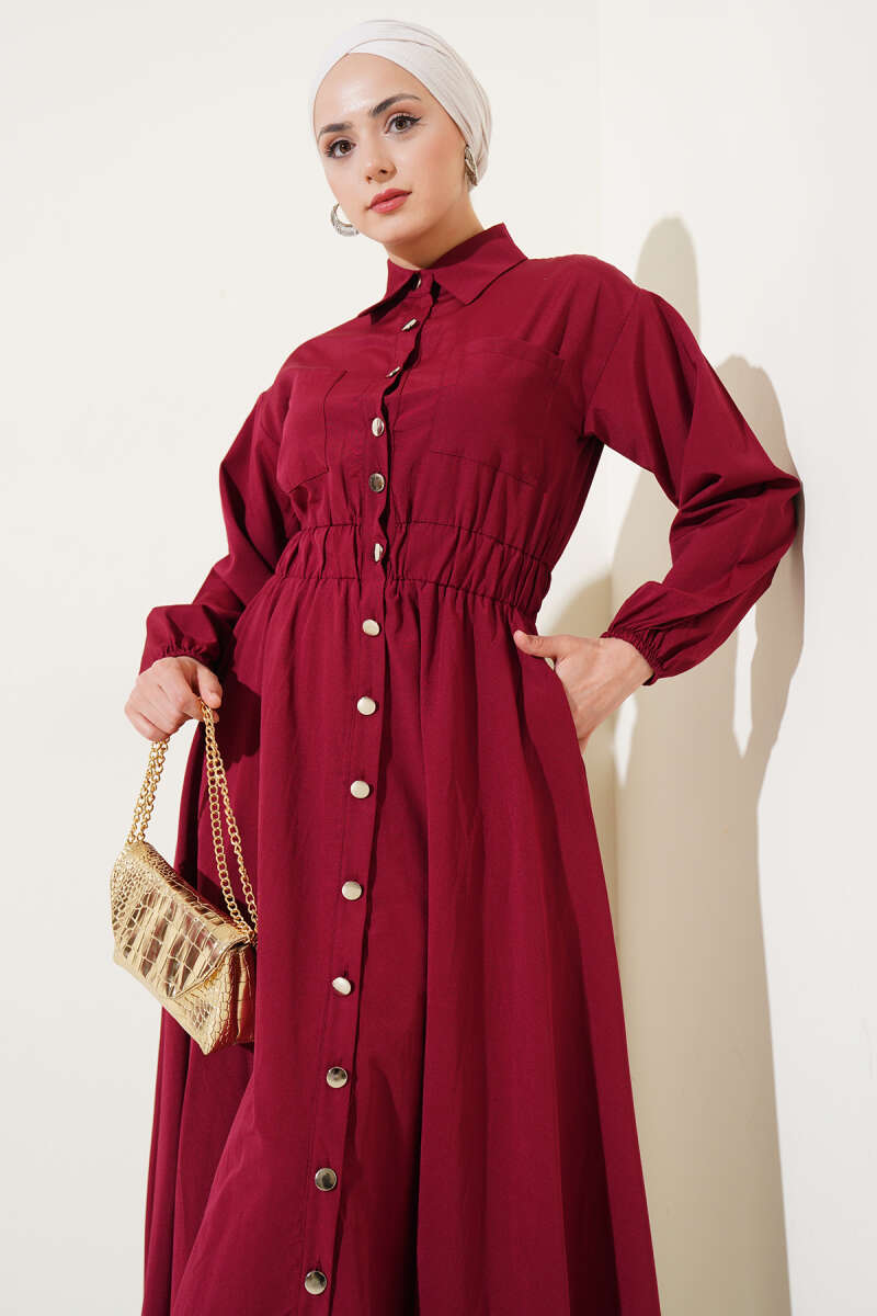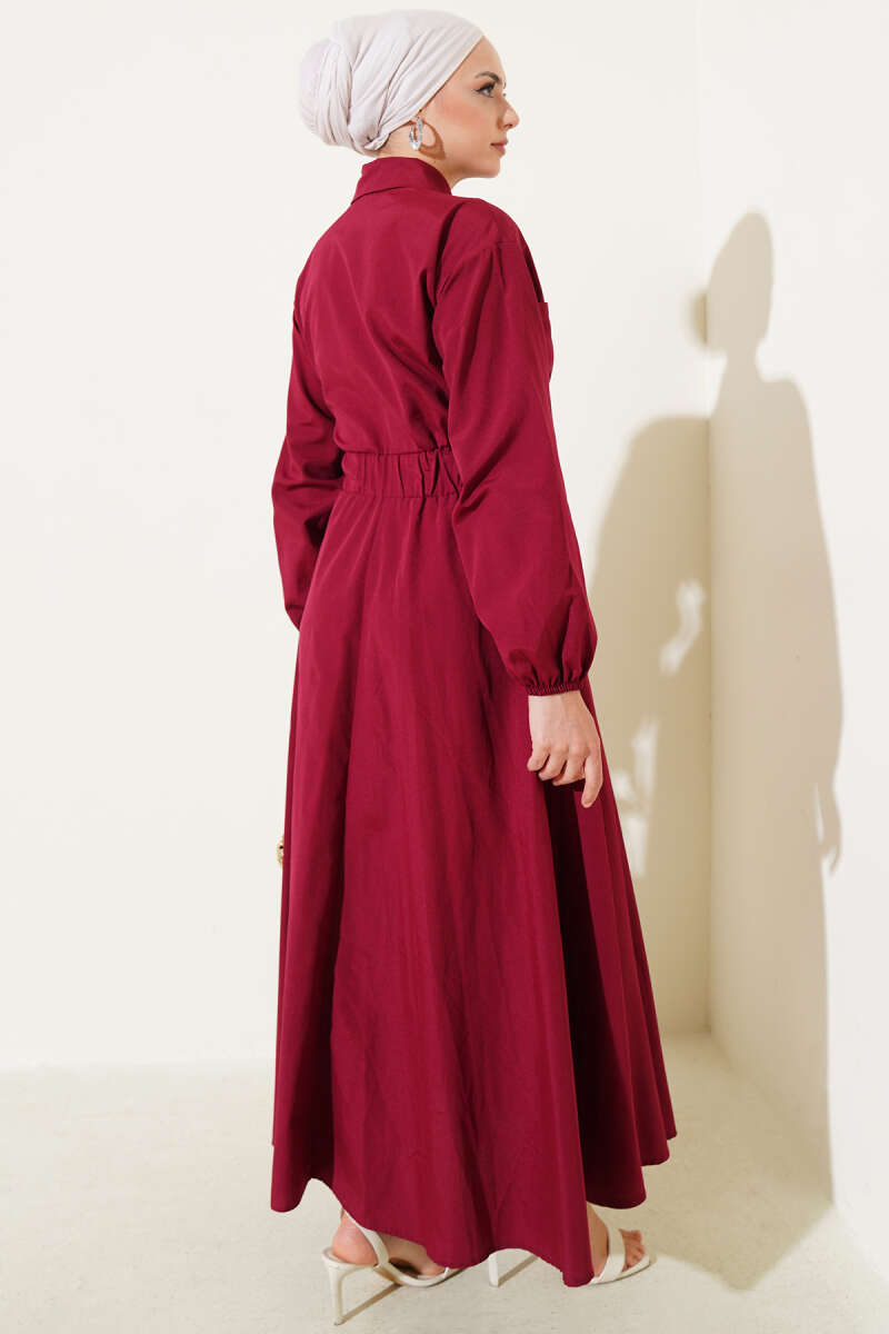 Duble Kol İp Kuşaklı Loyşa Elbise Bordo