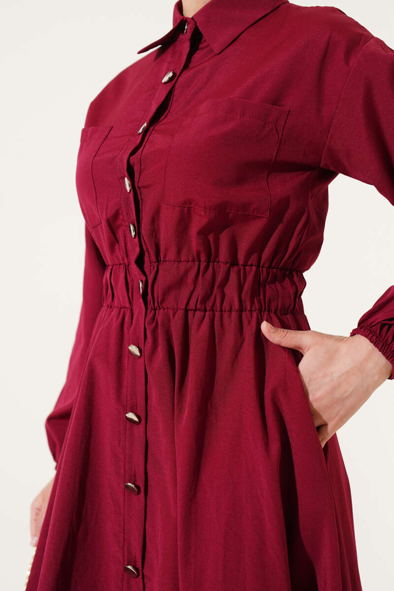 Dik Fitilli Kuşaklı Basic Elbise Bordo
