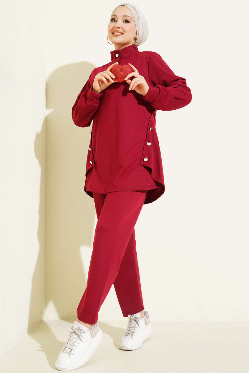 Yanları Düğmeli İki İplik İkili Takım Zümrüt
