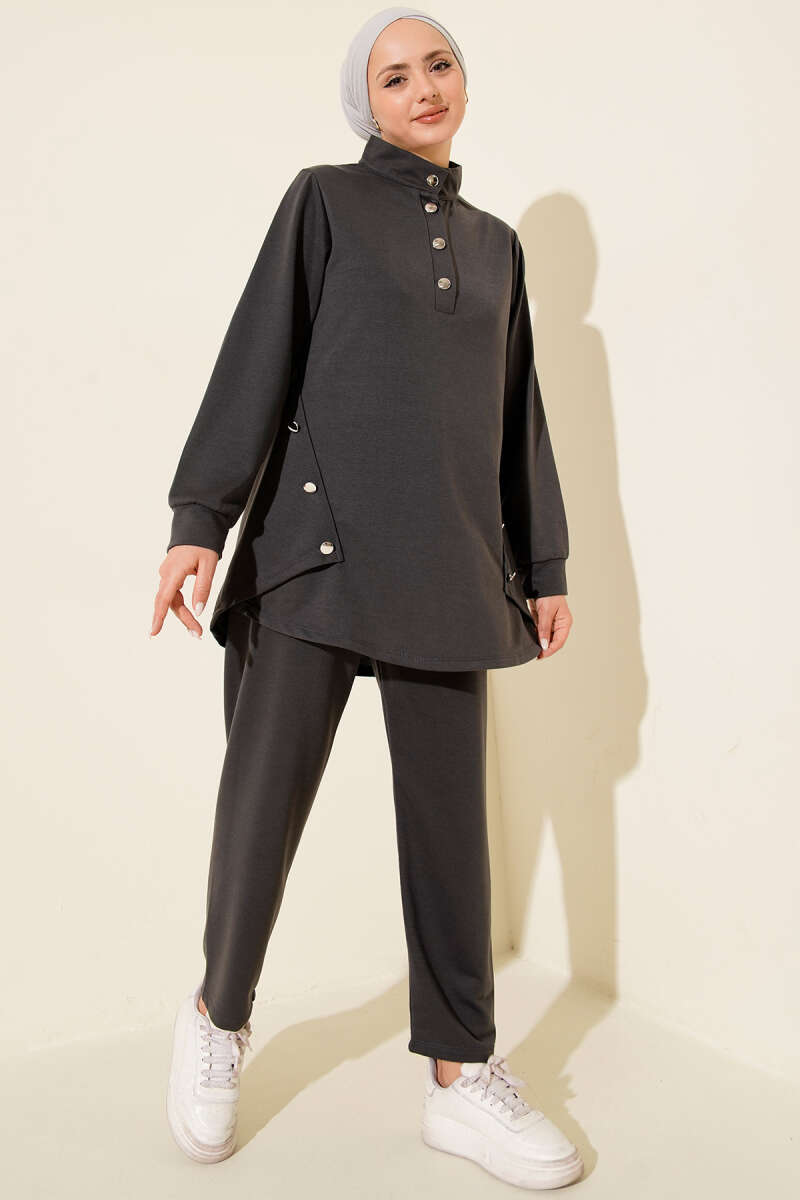 Yanları Düğmeli İki İplik İkili Takım Siyah