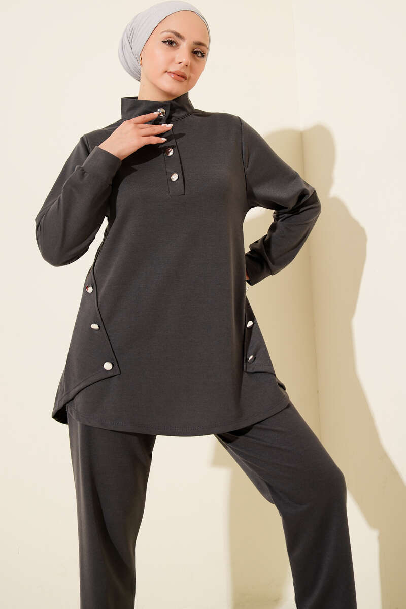 Yanları Düğmeli İki İplik İkili Takım Zümrüt
