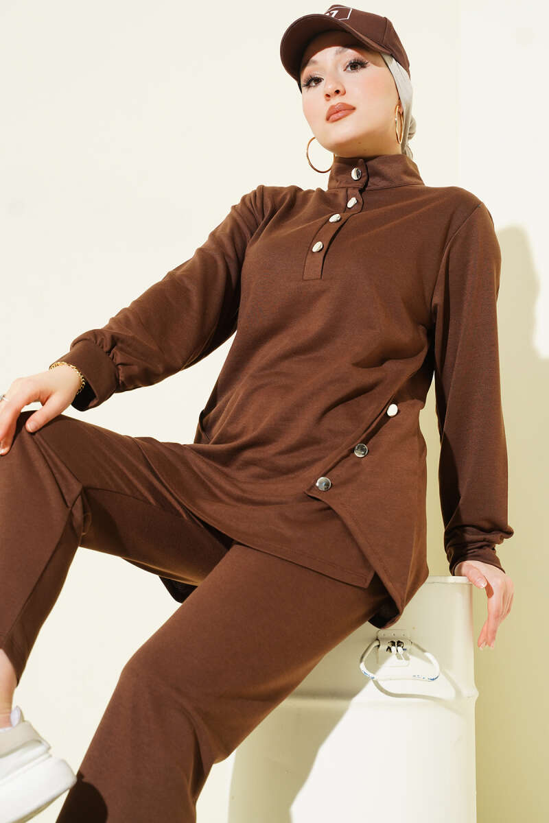 Yanları Düğmeli İki İplik İkili Takım Zümrüt