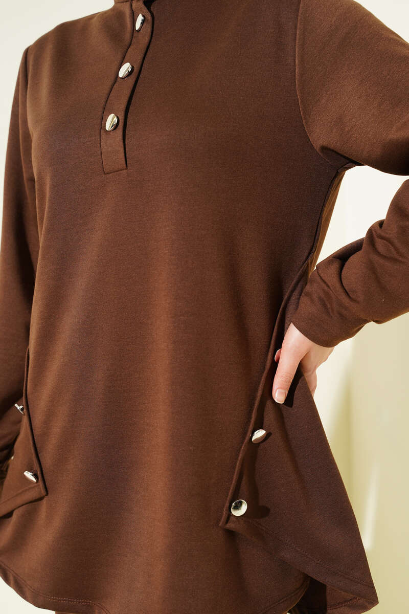 Baklava Kabartma Taşlı Triko İkili Takım Bej