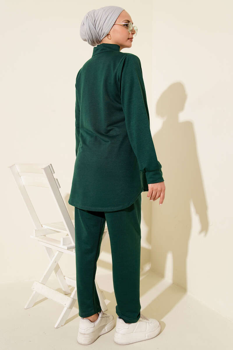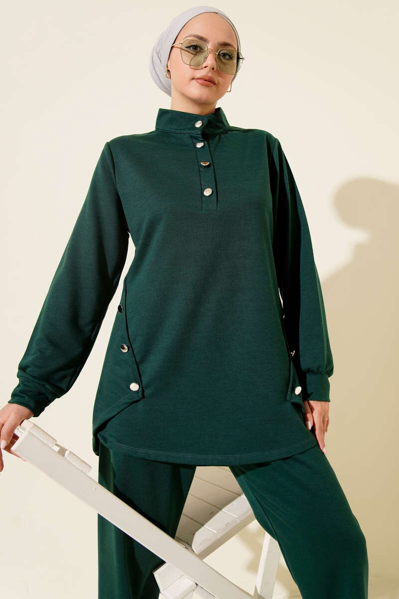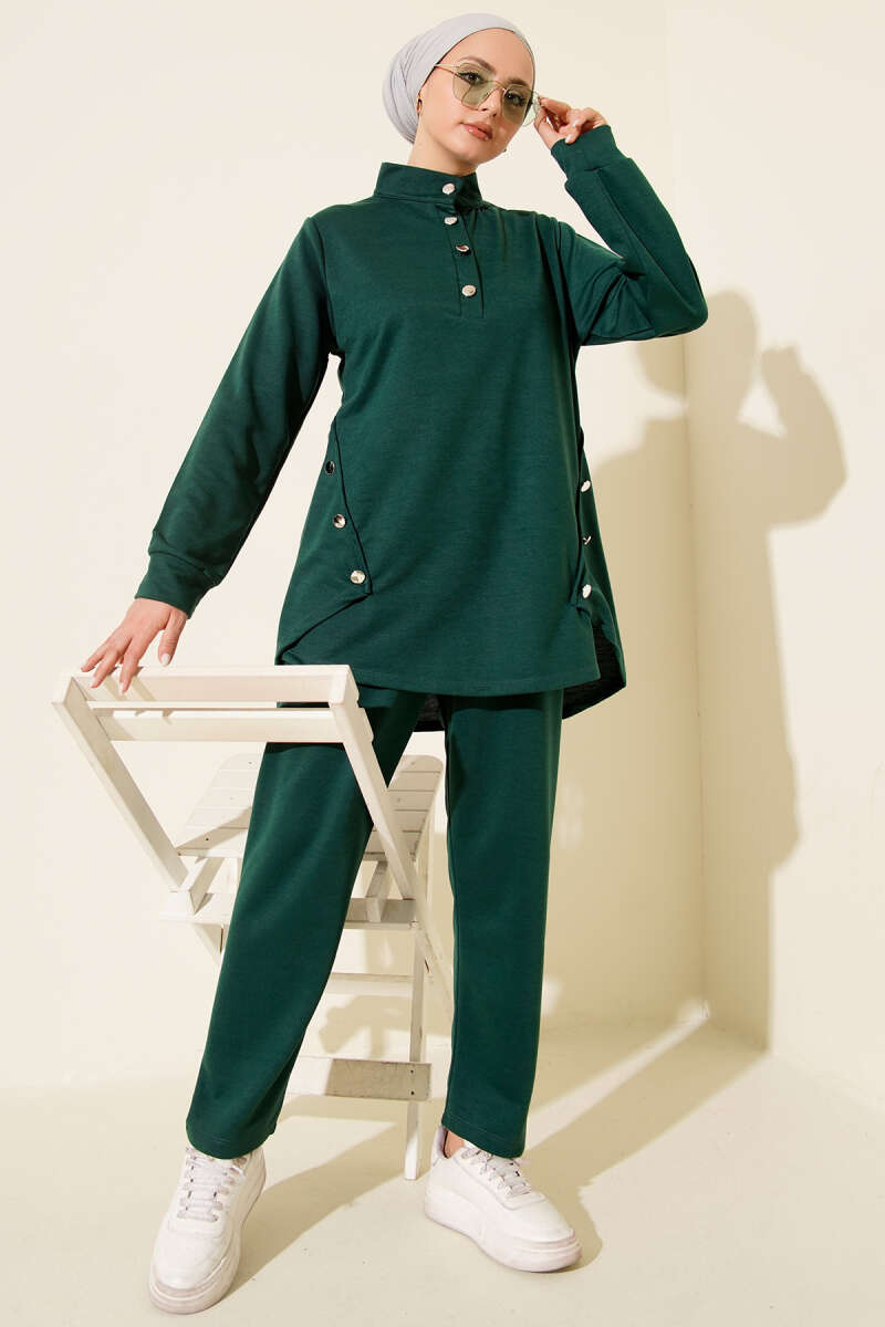 Yanları Düğmeli İki İplik İkili Takım Zümrüt