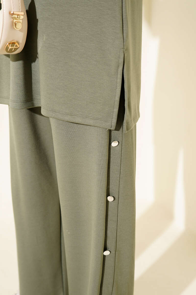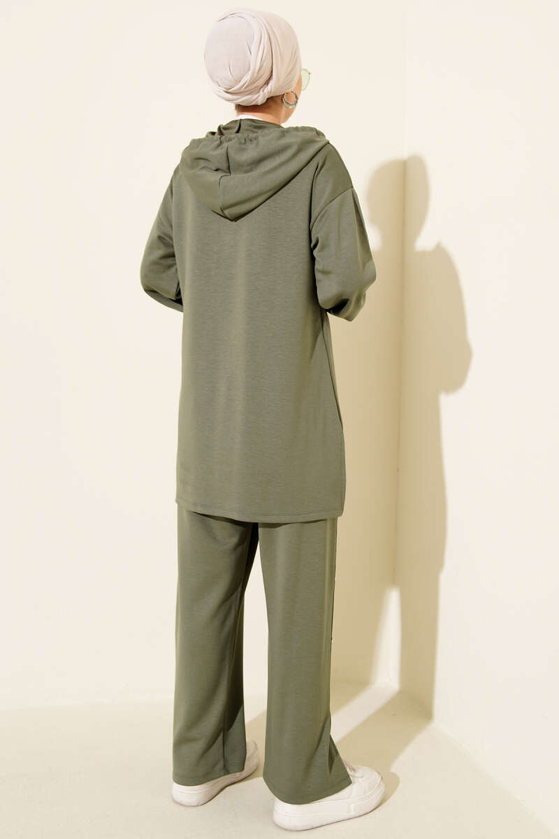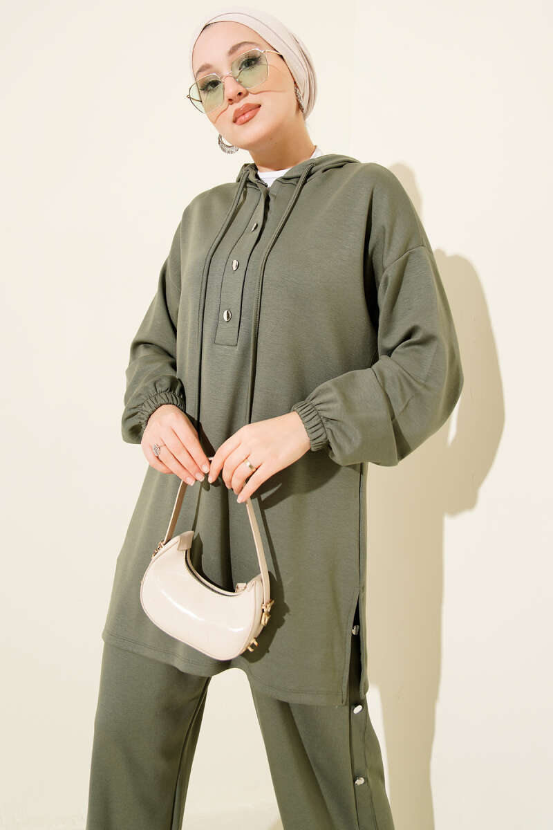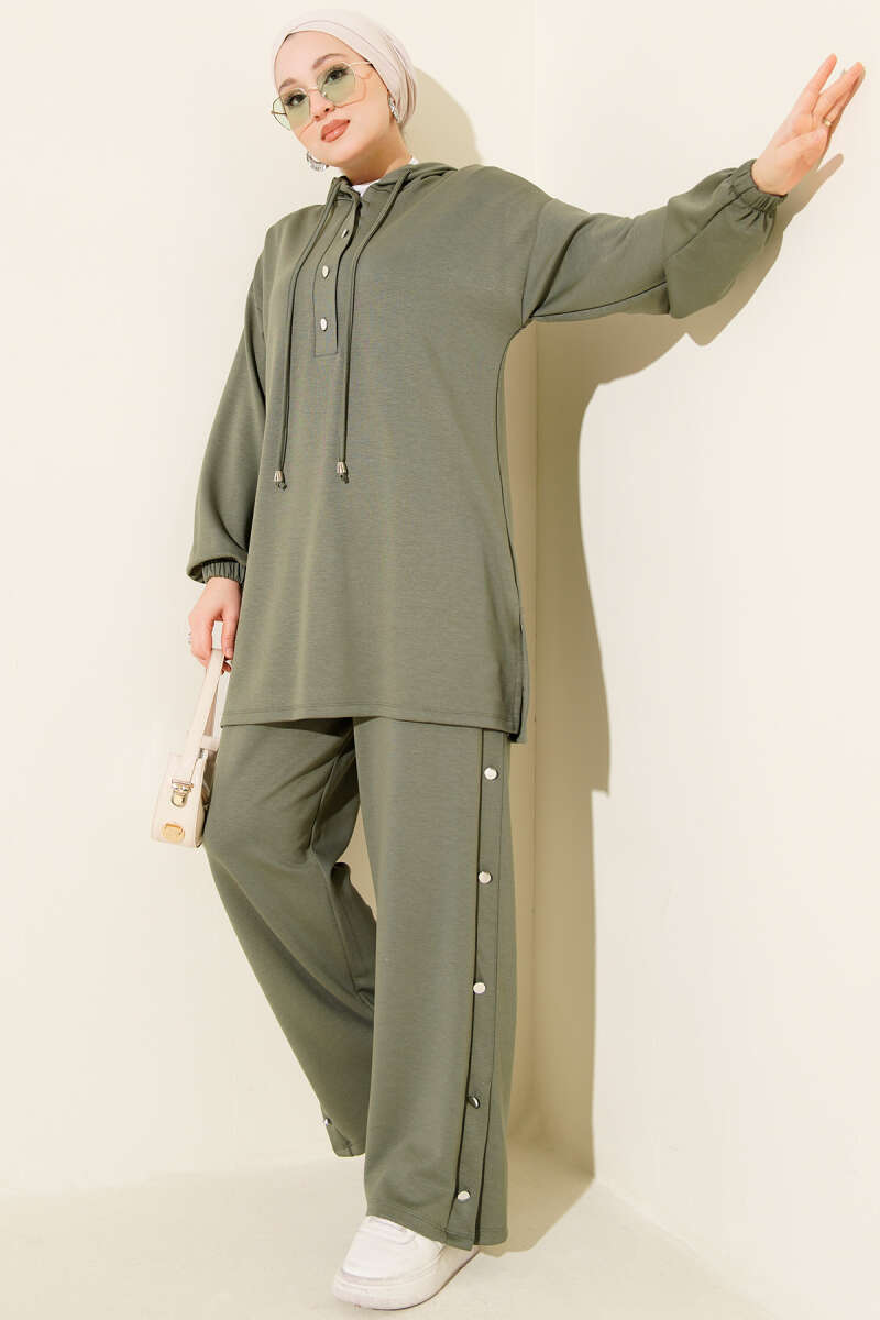 Metal Düğmeli Kapüşonlu Loyşa İkili Takım Çağla Yeşili