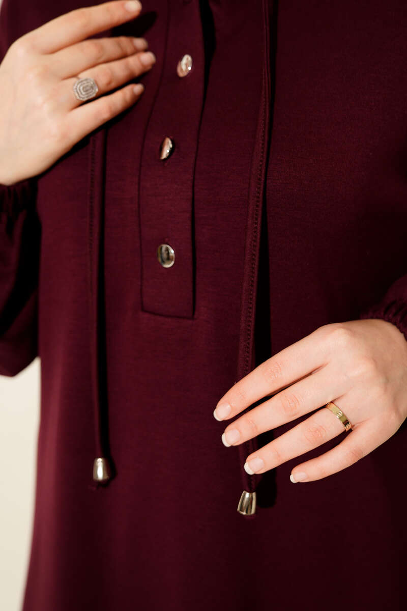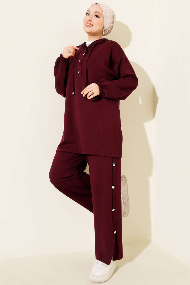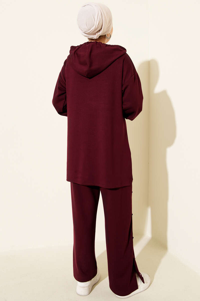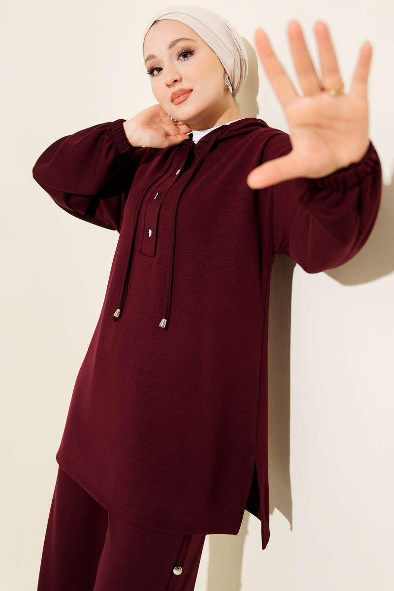 Metal Düğmeli Kapüşonlu Loyşa İkili Takım Mürdüm