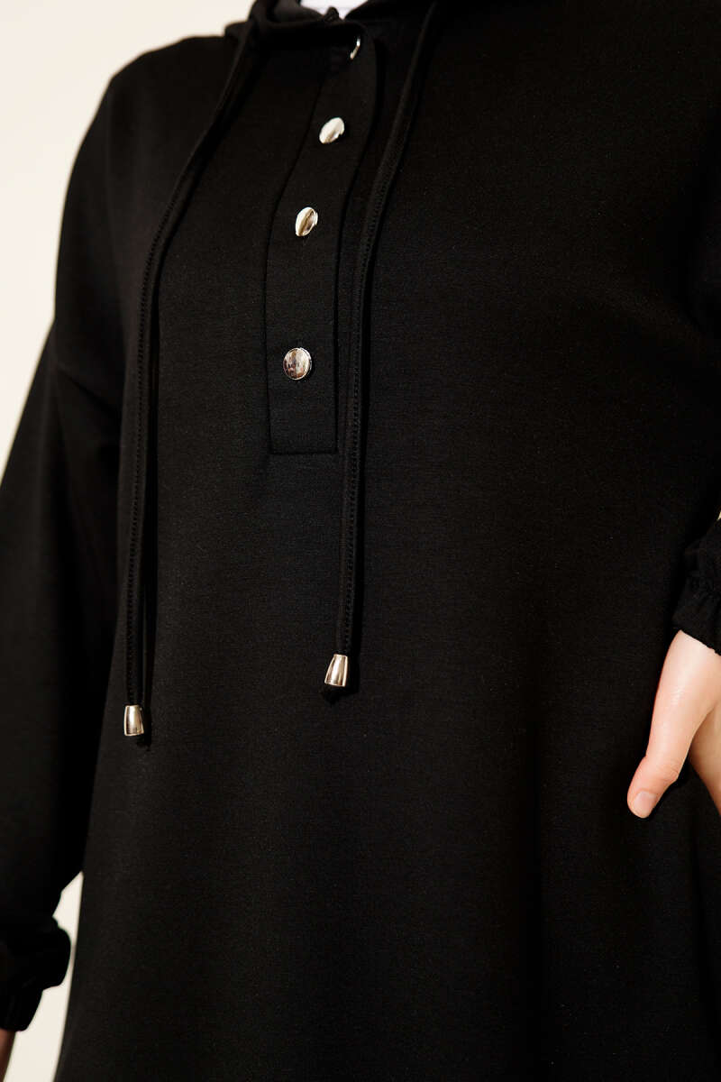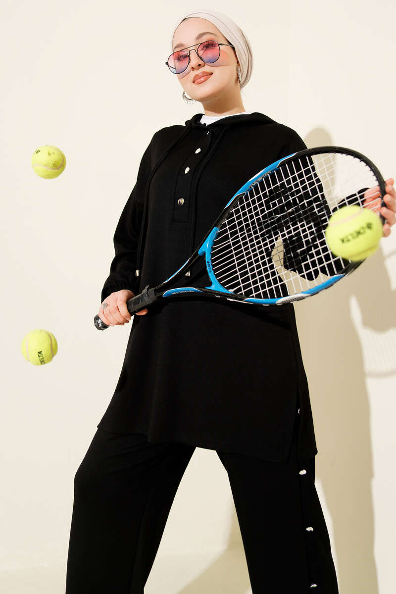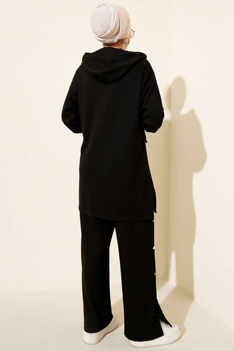 Metal Düğmeli Kapüşonlu Loyşa İkili Takım Siyah
