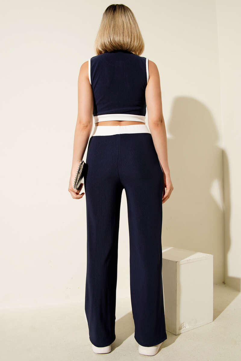 Metal Düğmeli Kolsuz Kaşkorse İkili Takım Lacivert