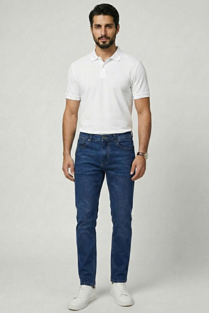 Dar Paça Likralı Erkek Kot Pantolon Lacivert