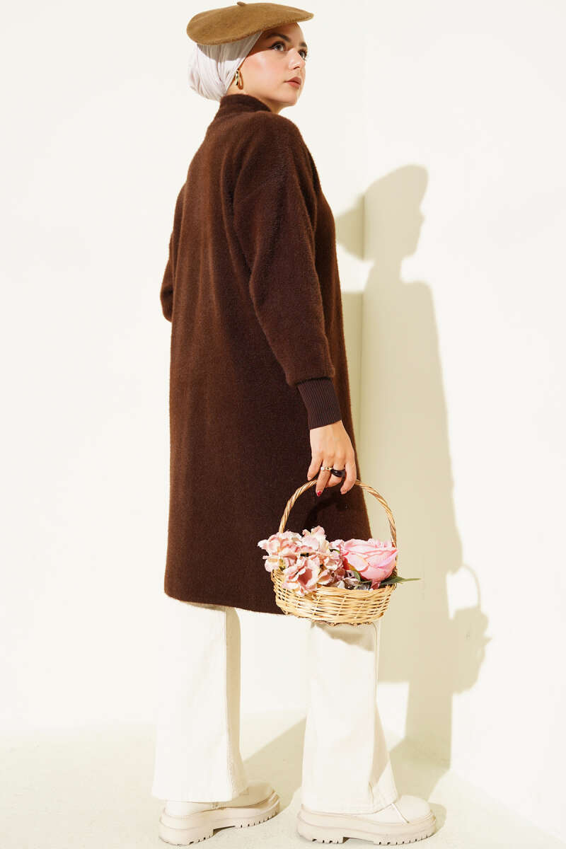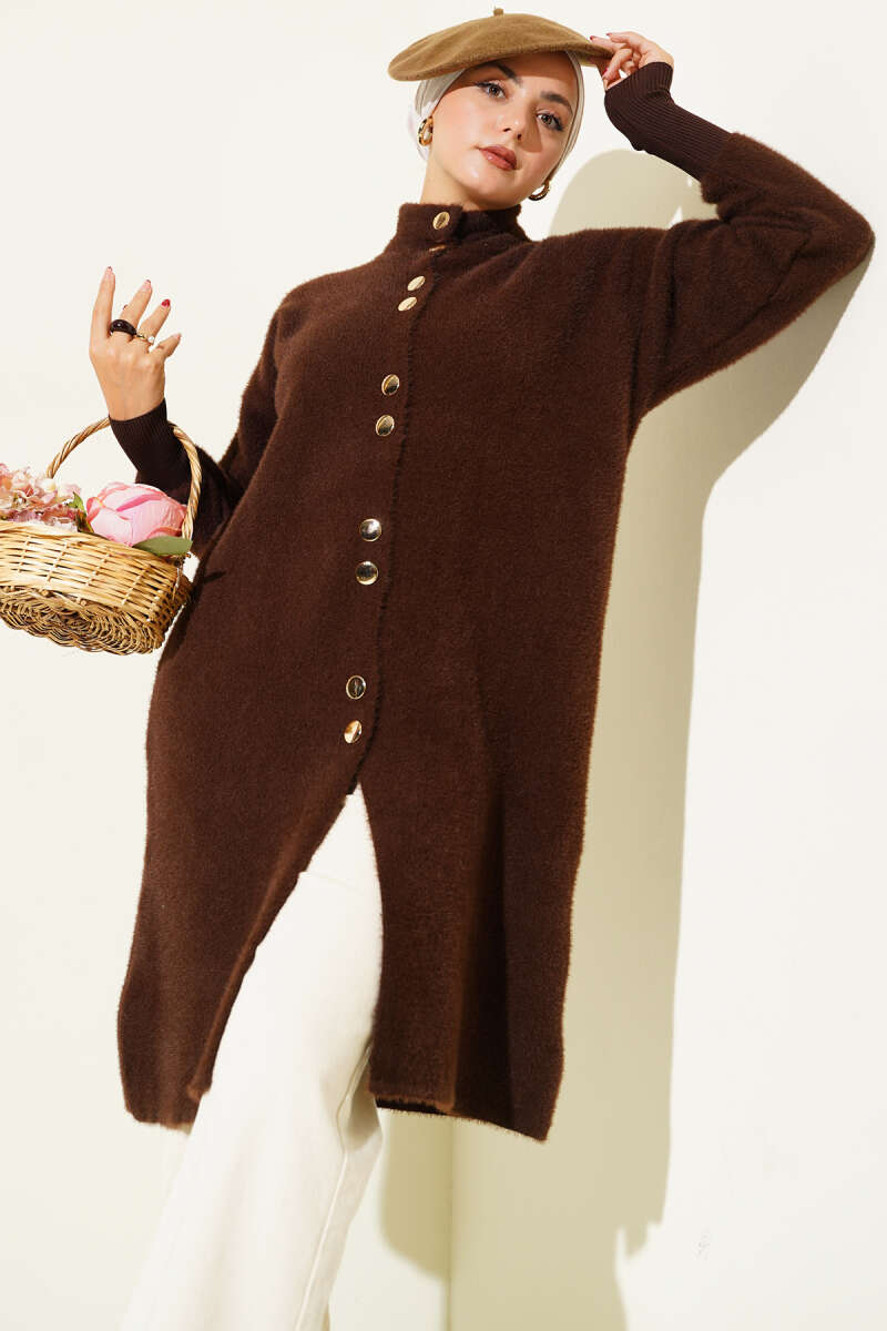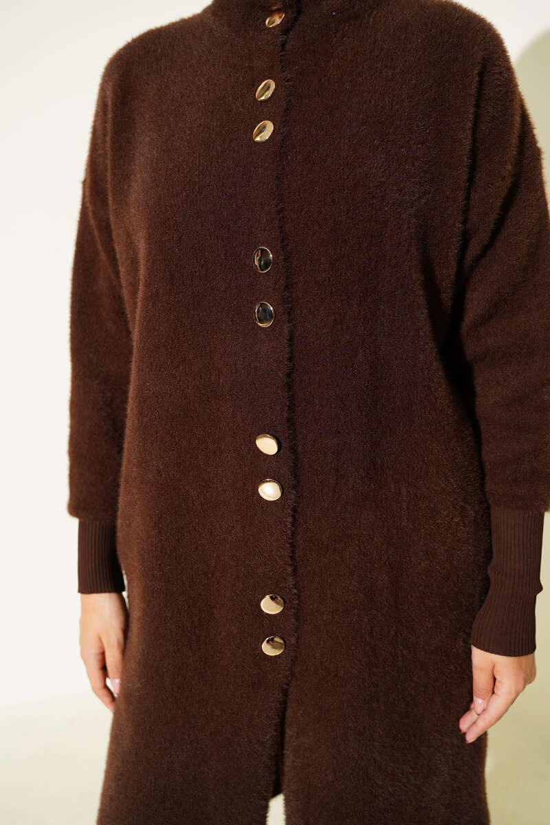 Saç Örgülü Düğmeli Triko Hırka Latte