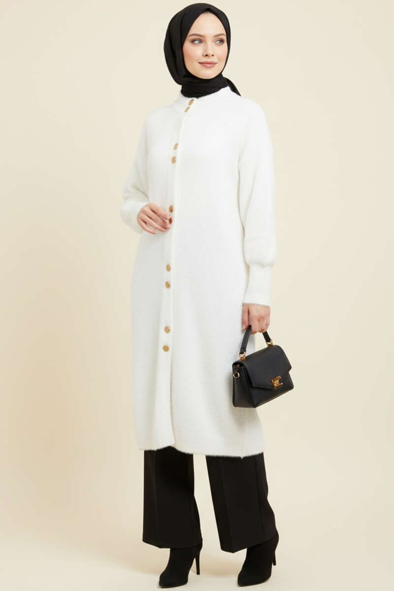 Metal Düğmeli Uzun Sakallı Hırka Kahve