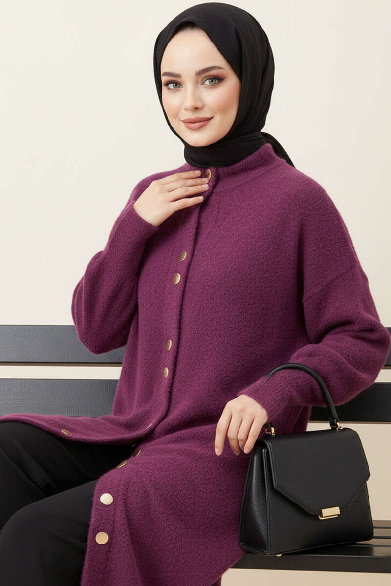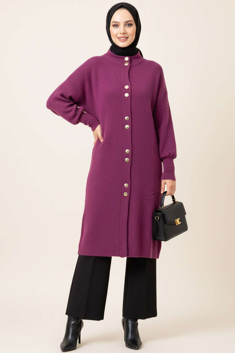 Metal Düğmeli Uzun Sakallı Hırka Pembe
