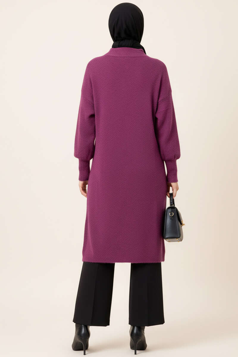 Yan Yırtmaçlı Yumoş Uzun Triko Tunik Yağ Yeşili