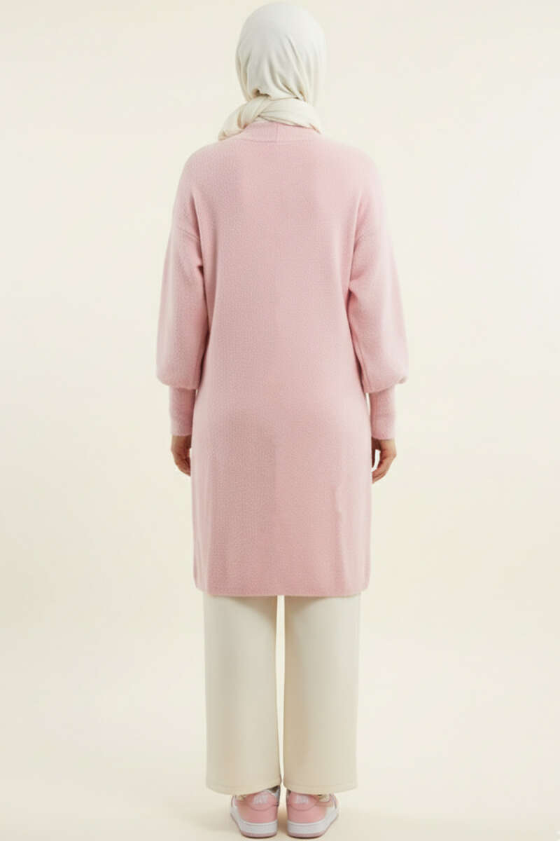 Metal Düğmeli Uzun Sakallı Hırka Pembe