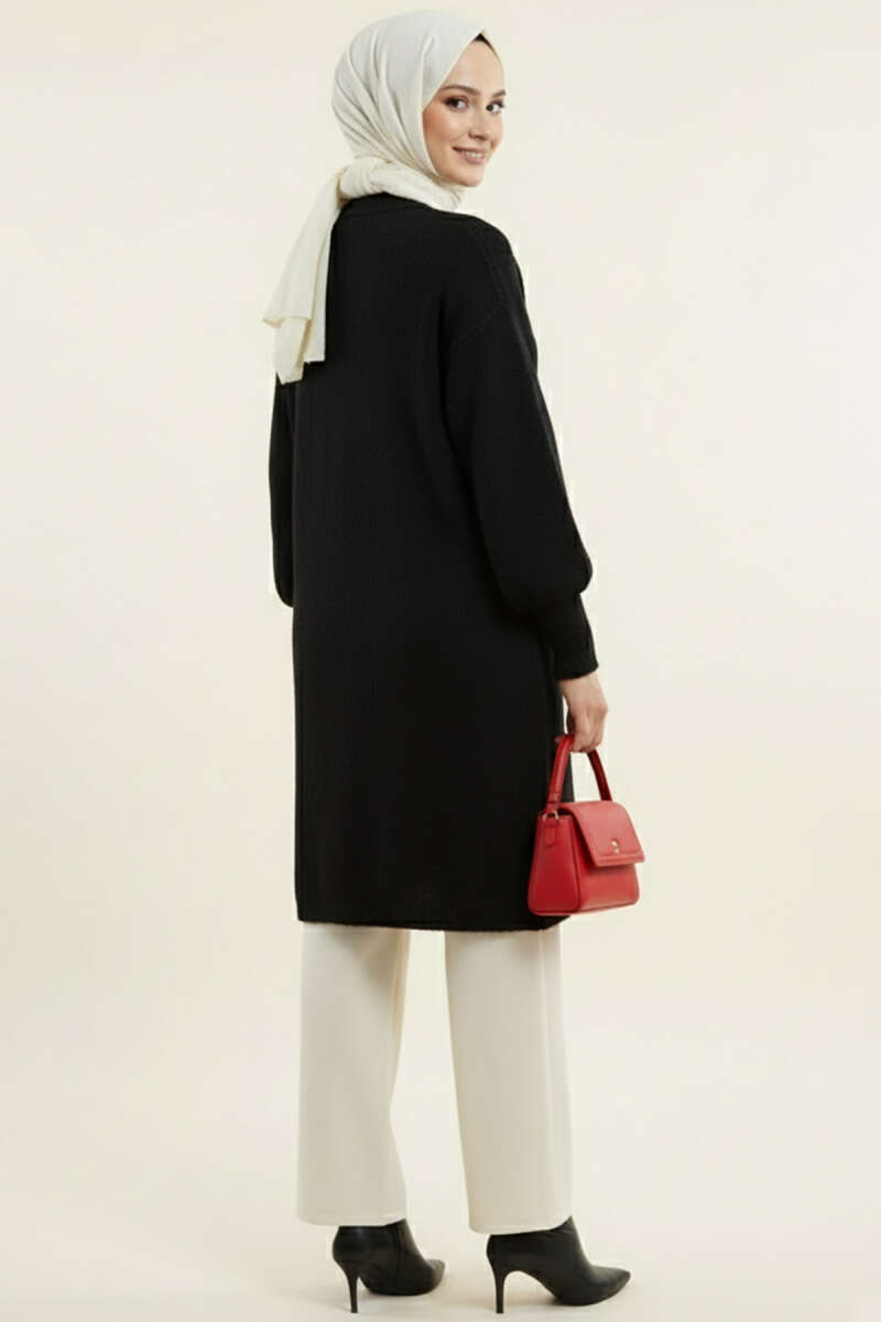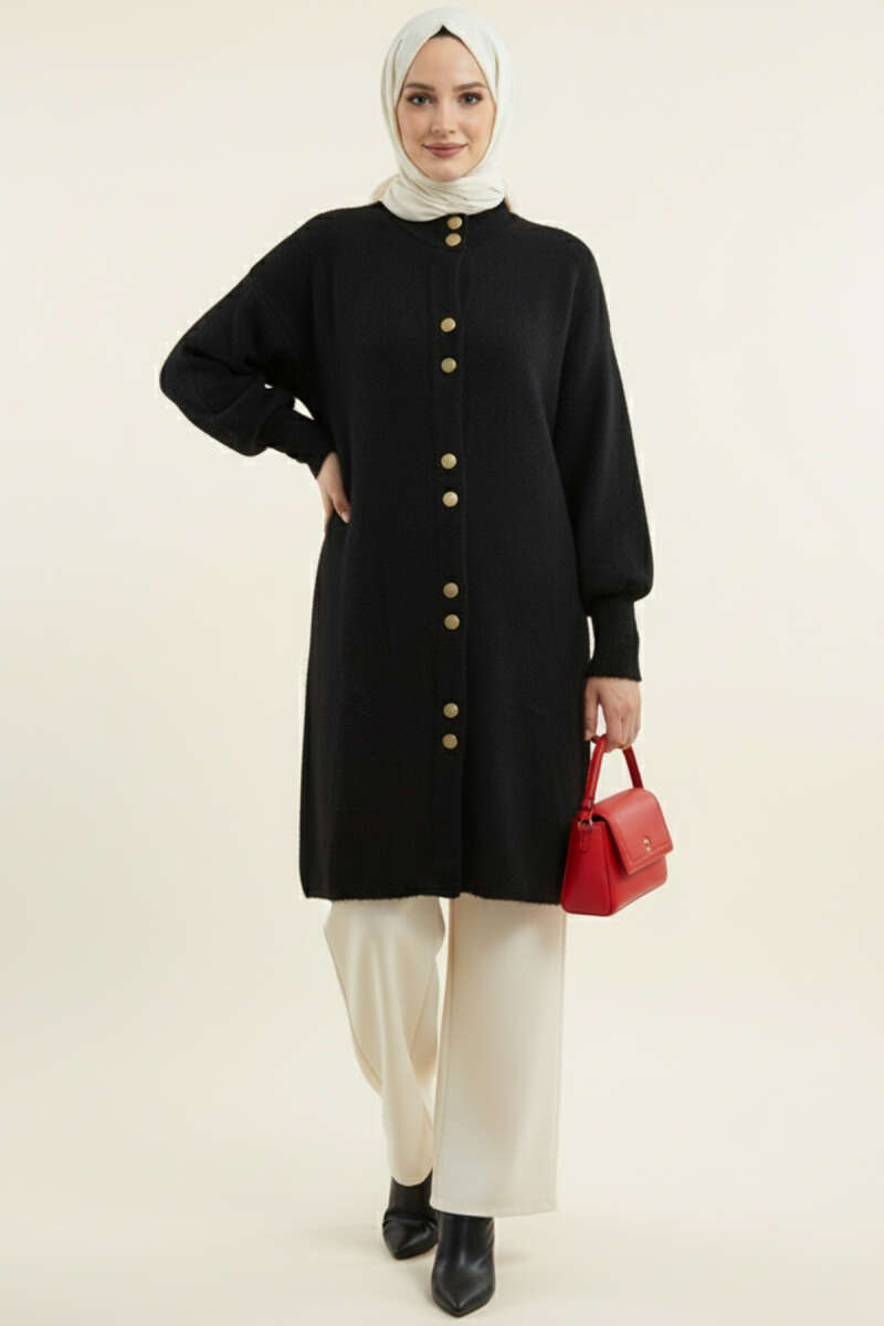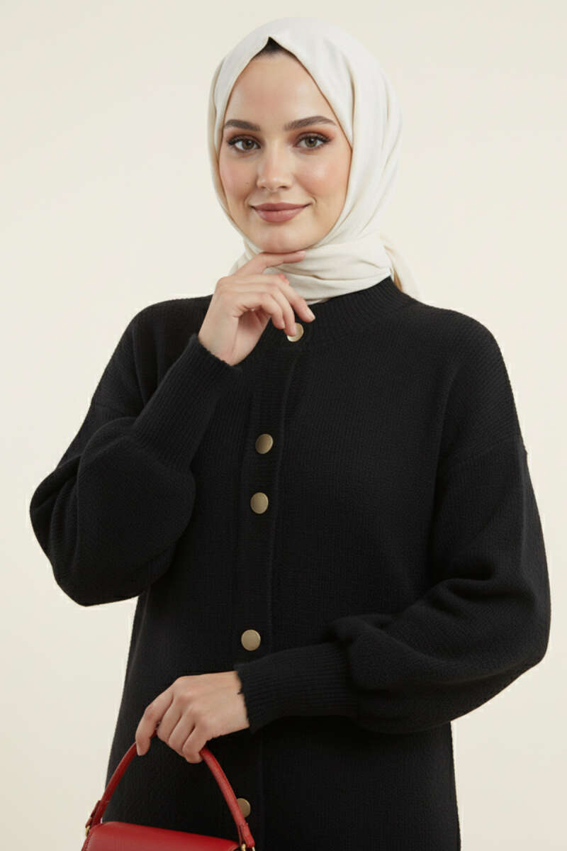 Metal Düğmeli Uzun Sakallı Hırka Siyah