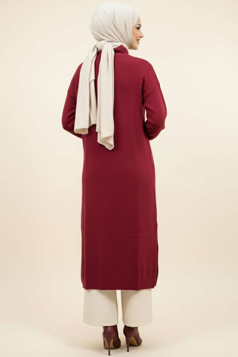 Omuz Gold Düğme Detaylı Tunik Bordo