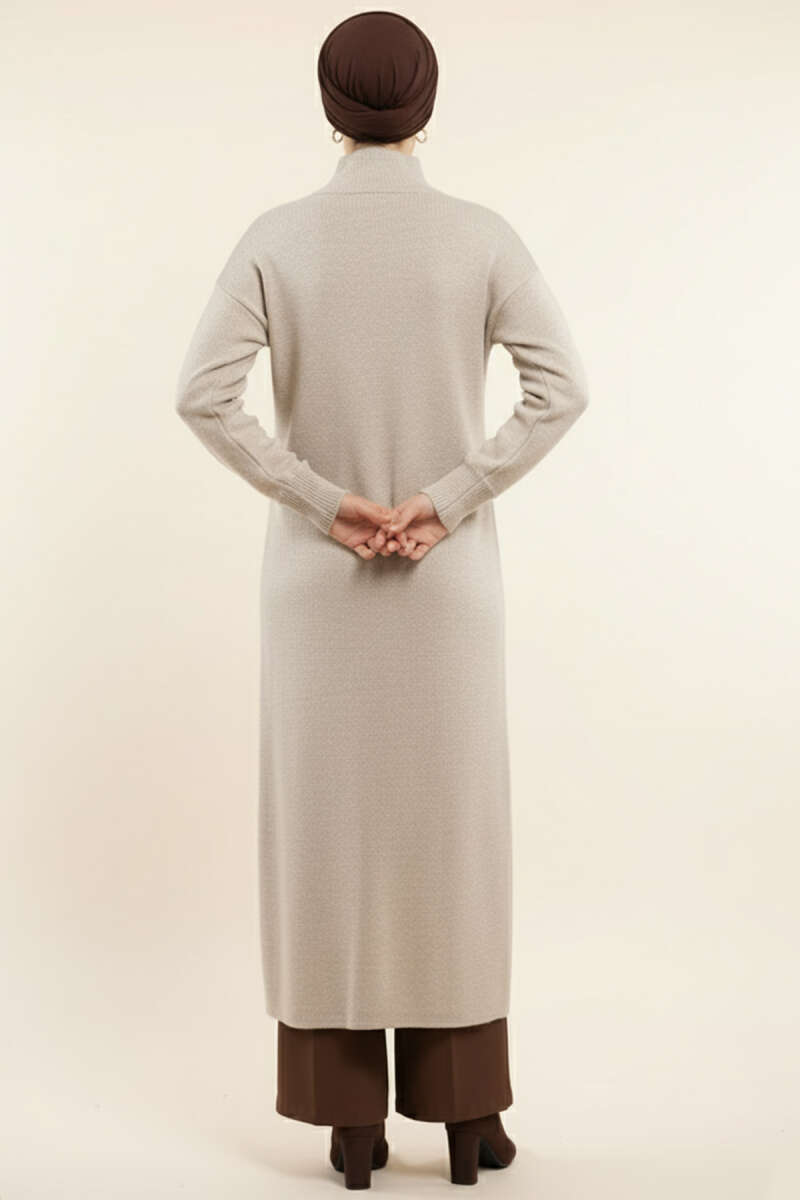 Basic Çift Cepli Uzun Triko Hırka İndigo