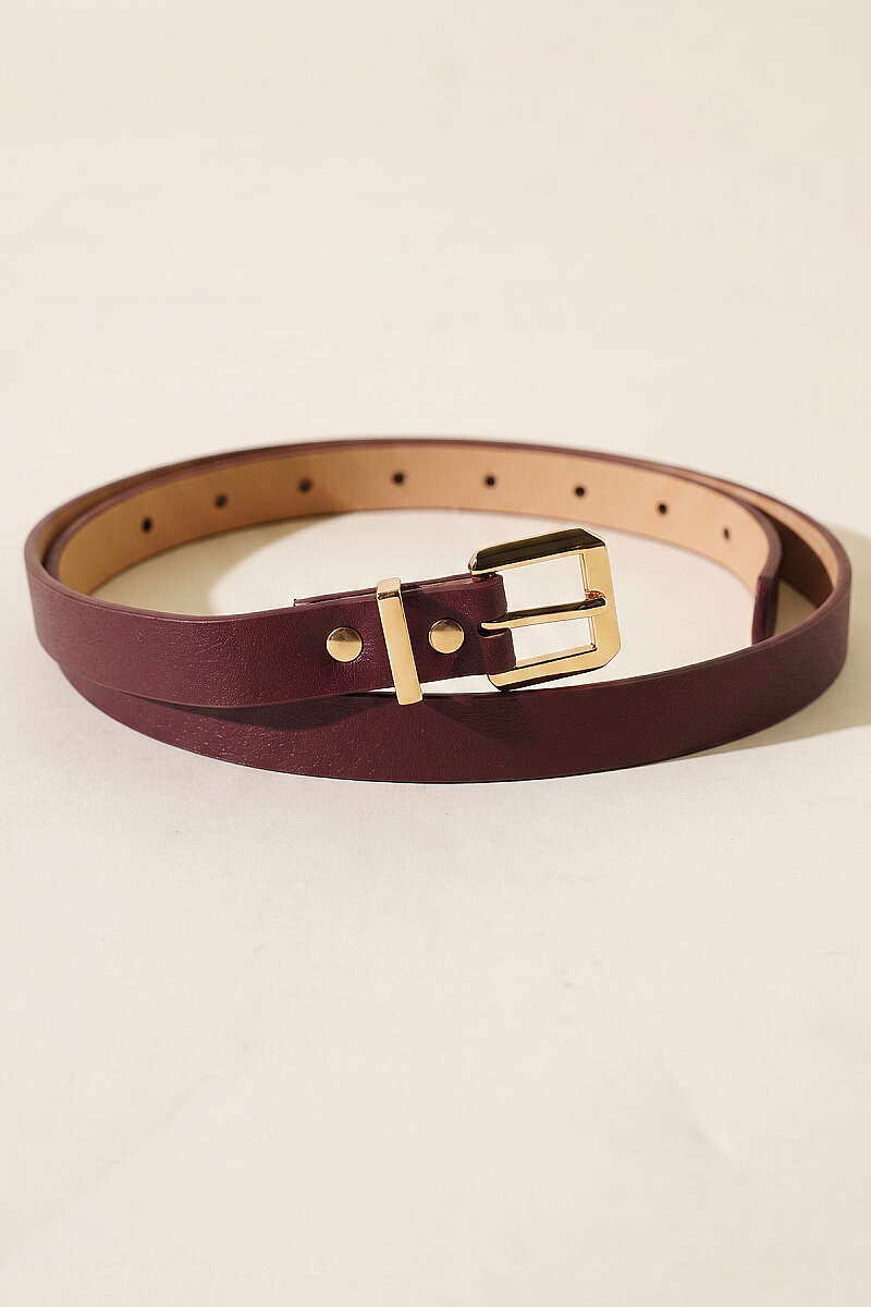 Metal Kare Tokalı İnce Kemer Bordo