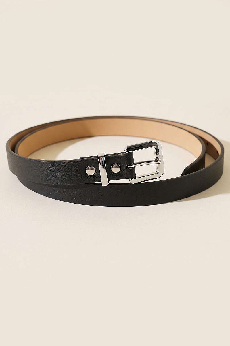 Metal Kare Tokalı İnce Kemer Siyah Gümüş