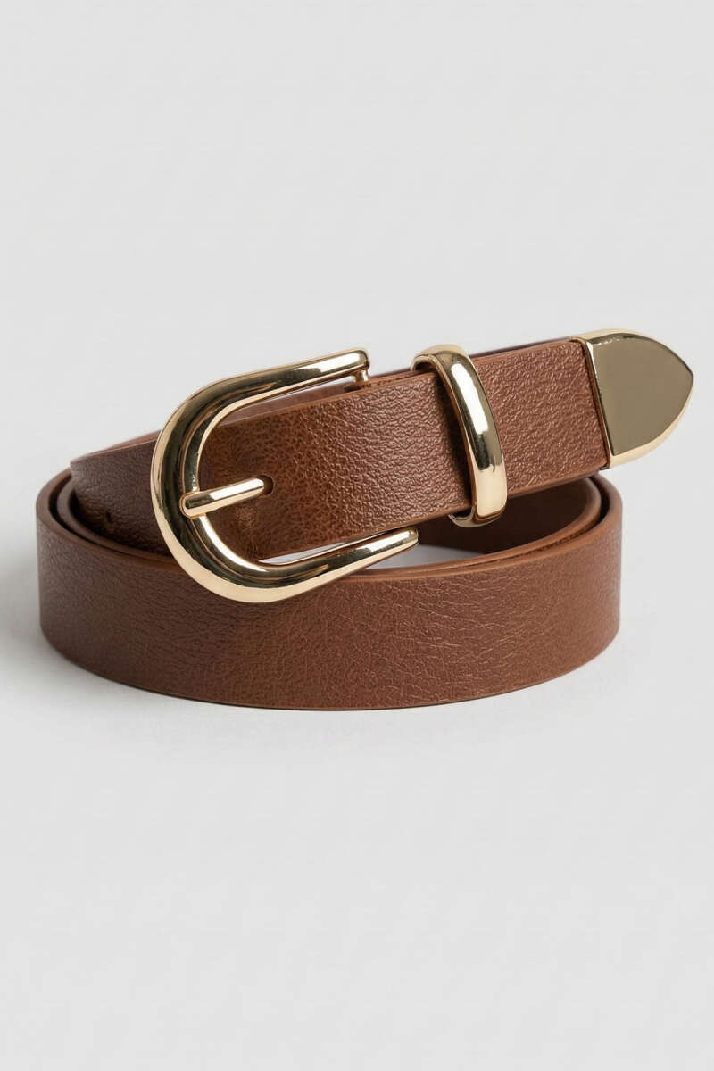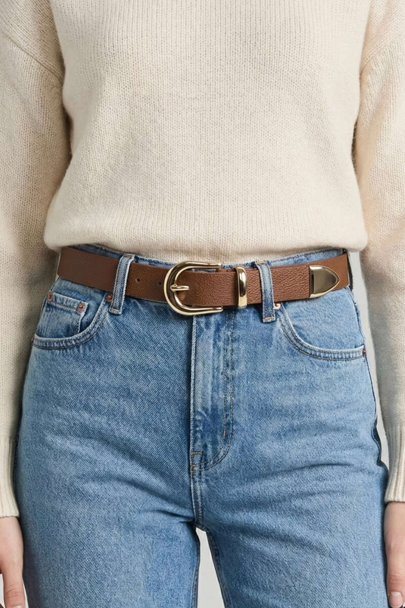 Yuvarlak Bakır Görünüm Tokalı Kemer Taba