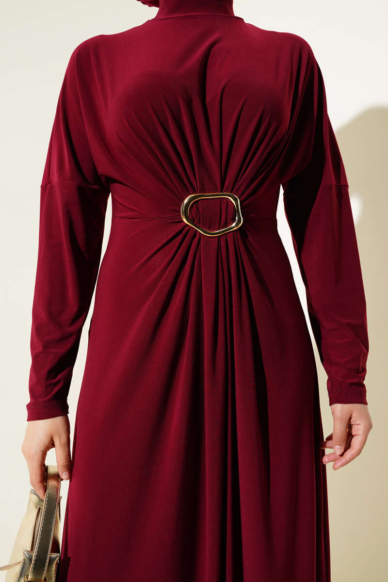 Gömlek Yaka Düğmeli Triko Elbise Bordo