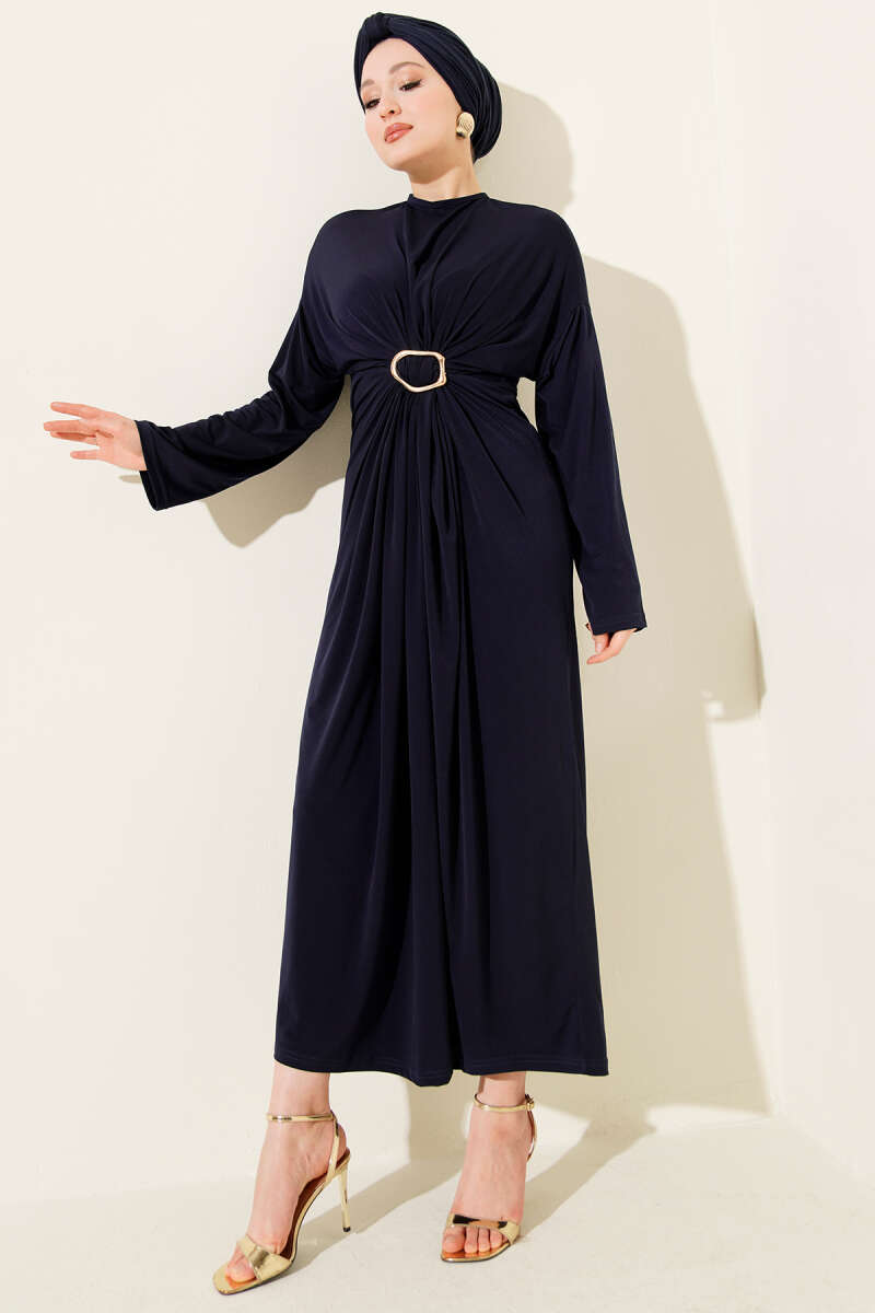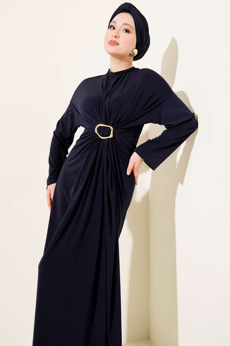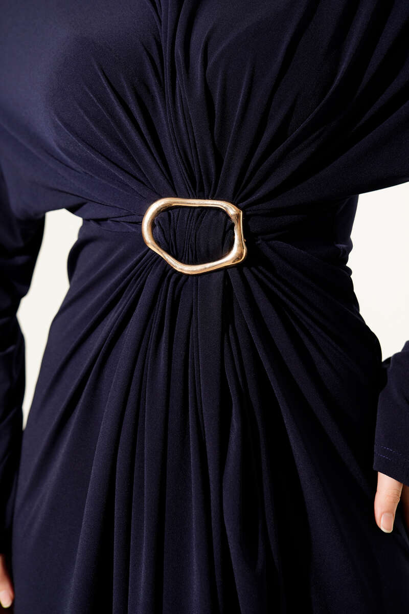 Metal Tokalı Büzgülü Sandy Elbise Siyah