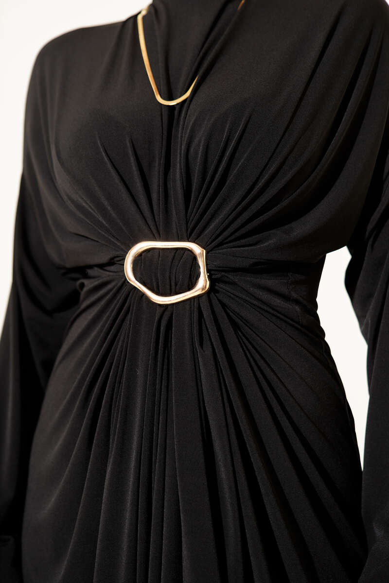 Metal Tokalı Büzgülü Sandy Elbise Zümrüt