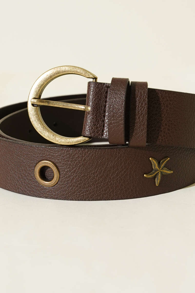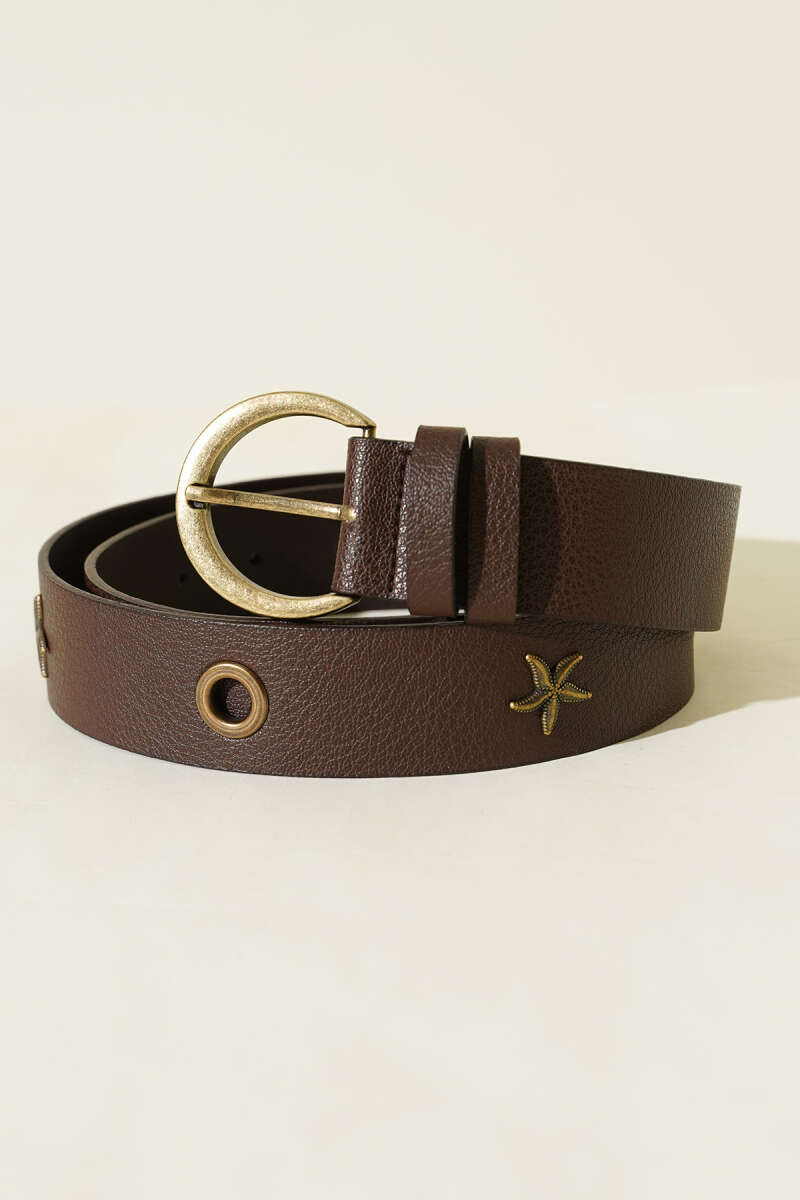 Metal Tokalı Deniz Yıldızı Desenli Kemer Acı Kahve