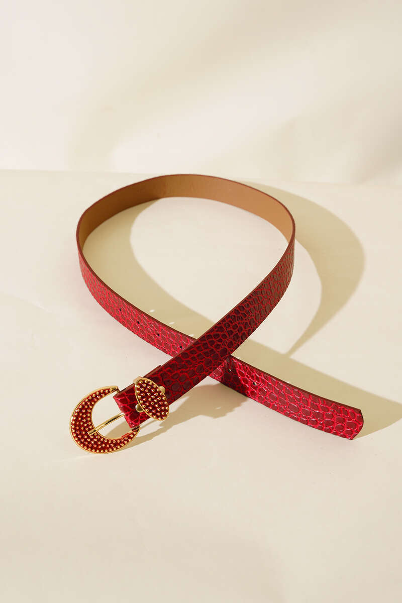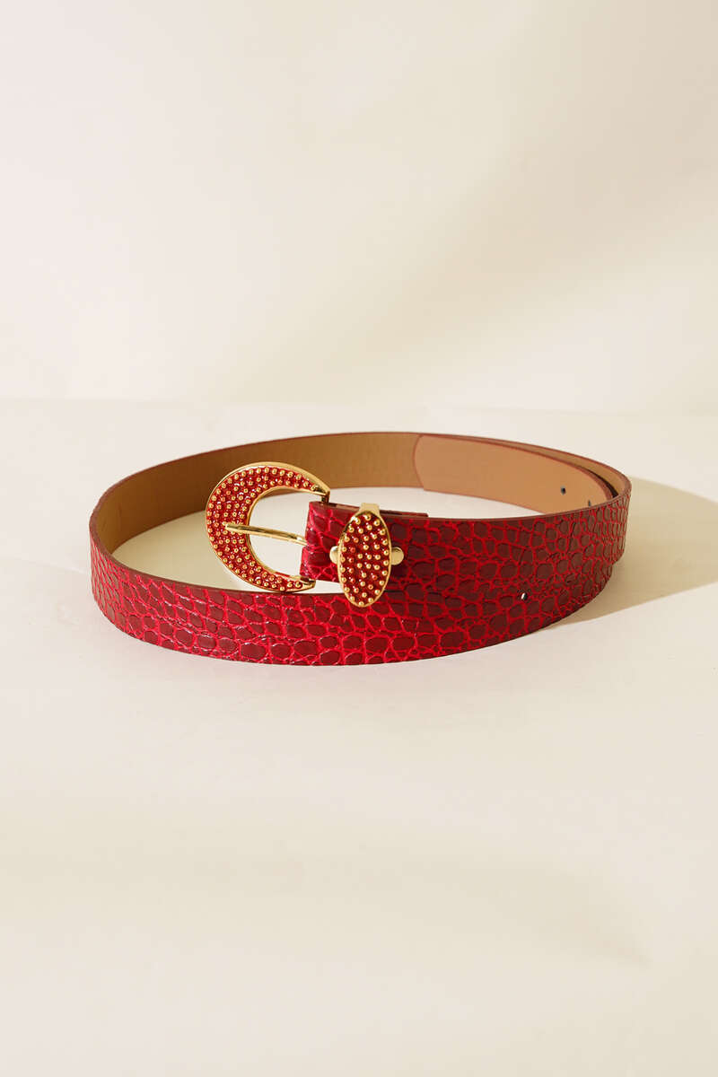 Metal Tokalı Kroko Kemer Kırmızı