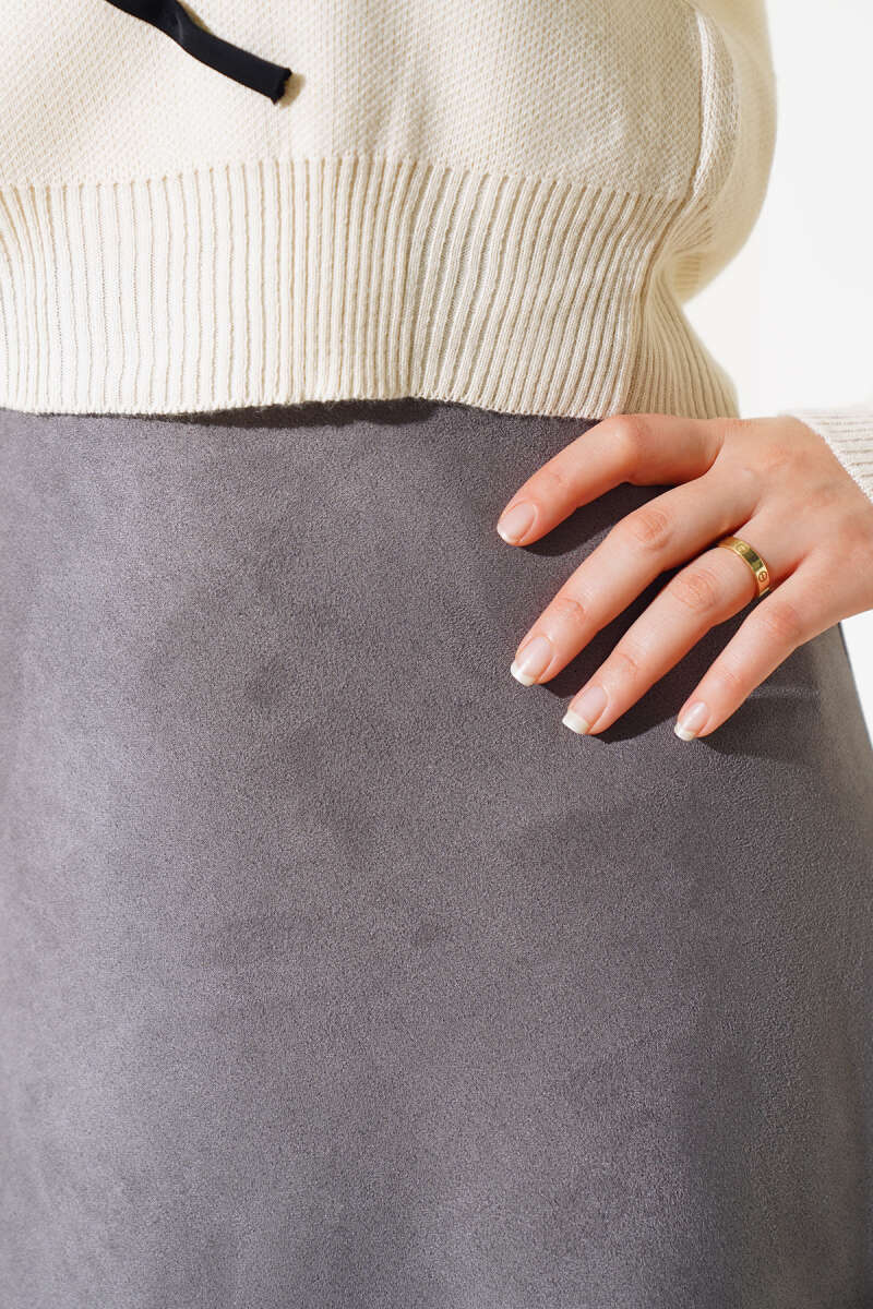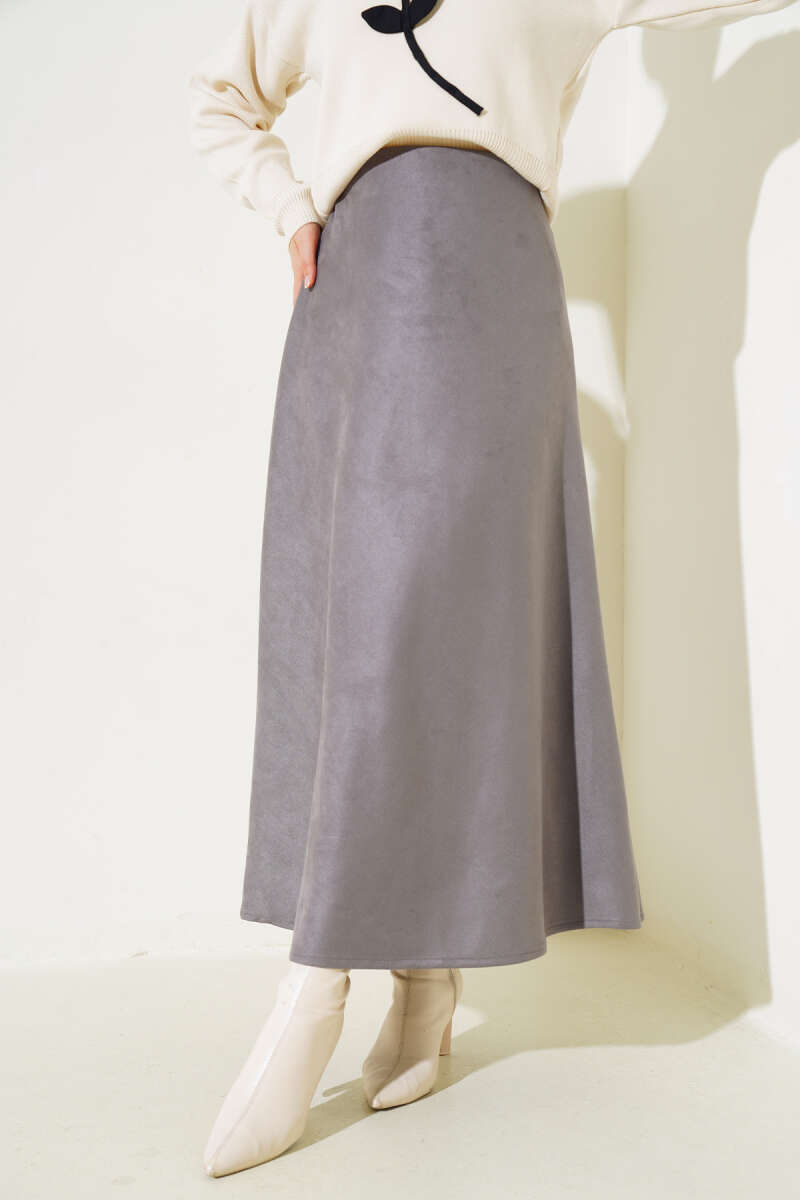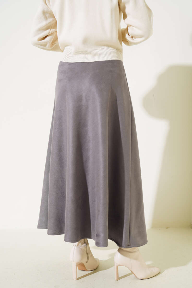 Beli Kemerli Lastikli Pileli Etek Vizon