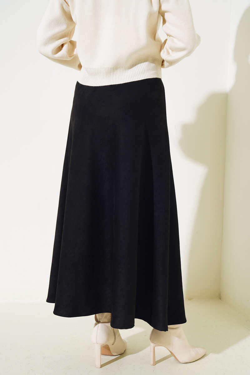 Ekose Desenli Düğmeli Kloş Etek Haki