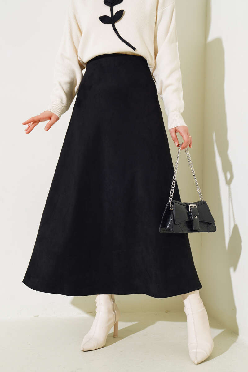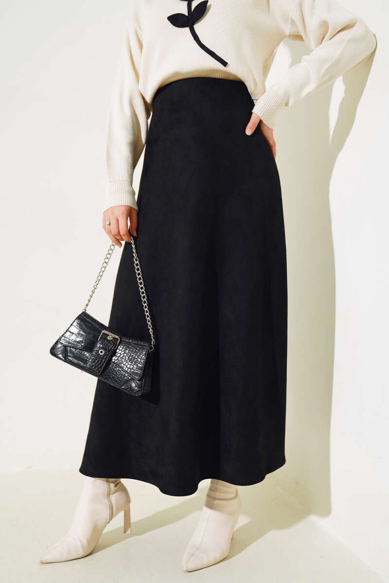 Yan Kemer Detaylı Ekoseli Etek Kahve