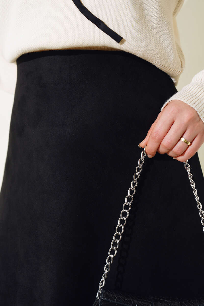 Kemer Aksesuarlı Ekoseli Etek Haki