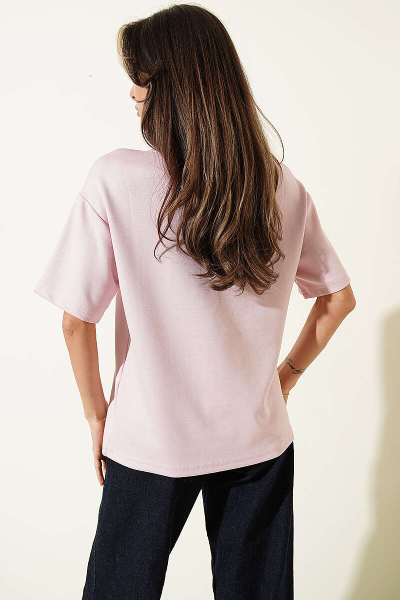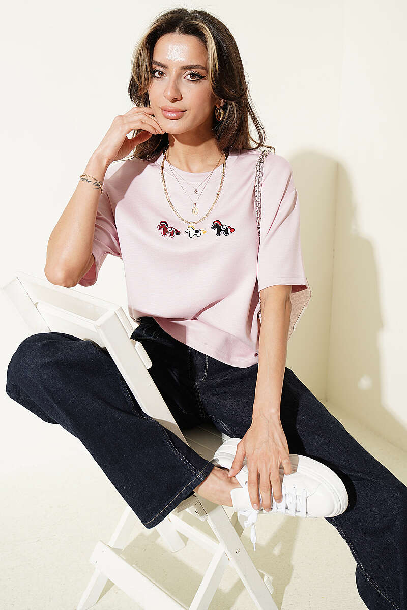 Midilli Nakışlı Modal T-shirt Pembe