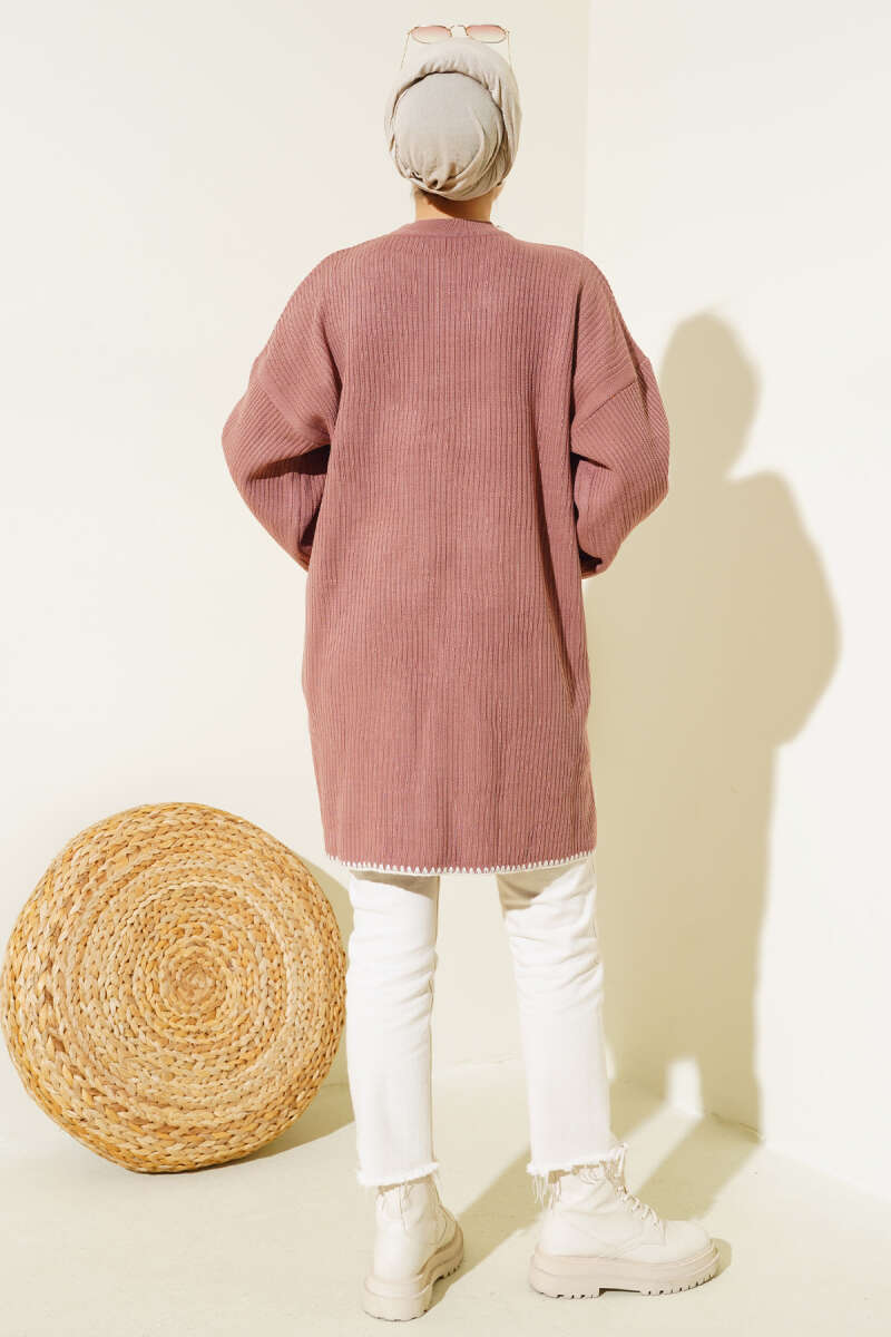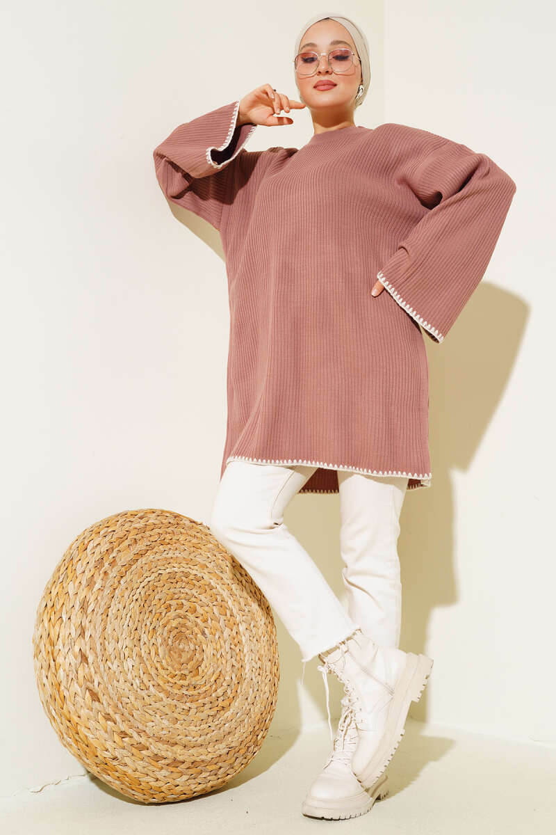 Midye Dikiş Detaylı Triko Tunik Gül Kurusu