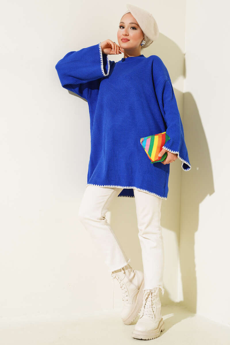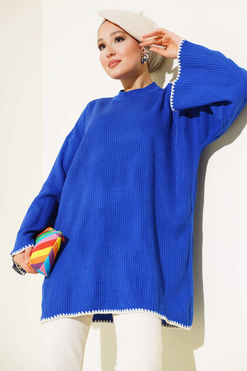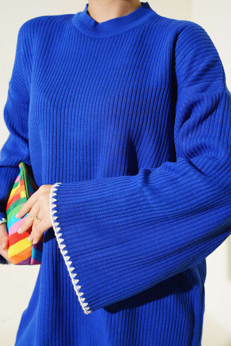 Midye Dikiş Detaylı Triko Tunik Saks