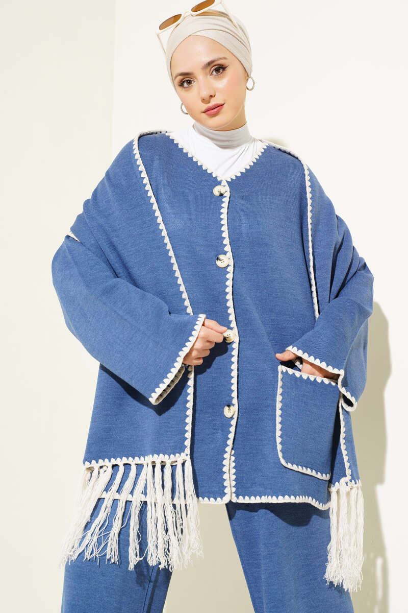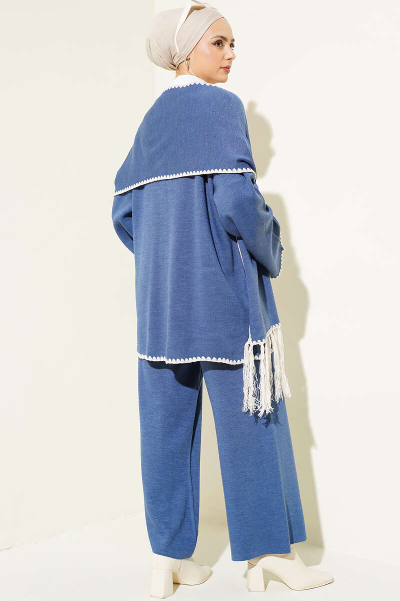 Balıkçı Yaka Fitilli Triko İkili Takım Lacivert