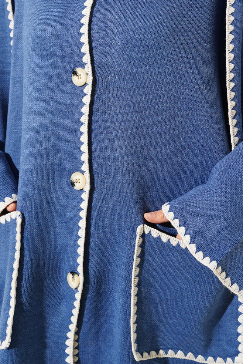 Zigzag Desenli Düğmeli Merserize Hırka Bordo