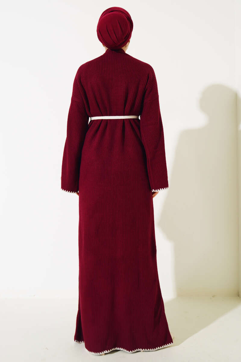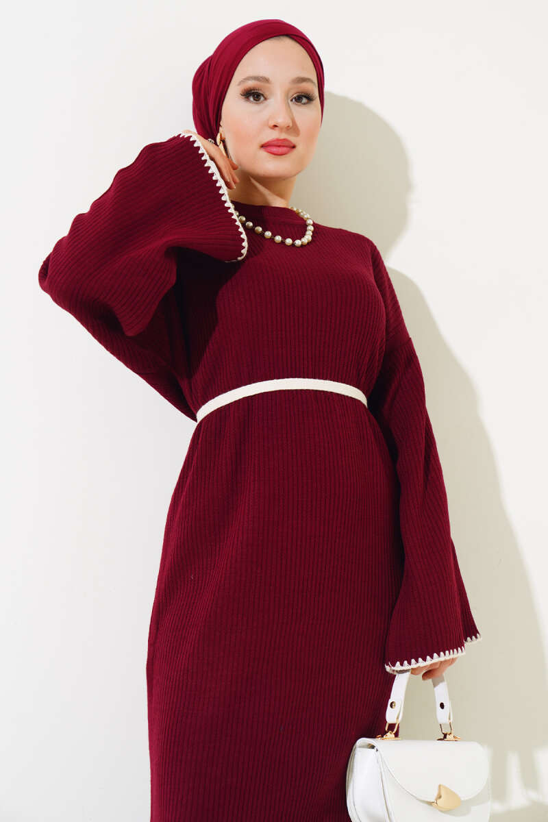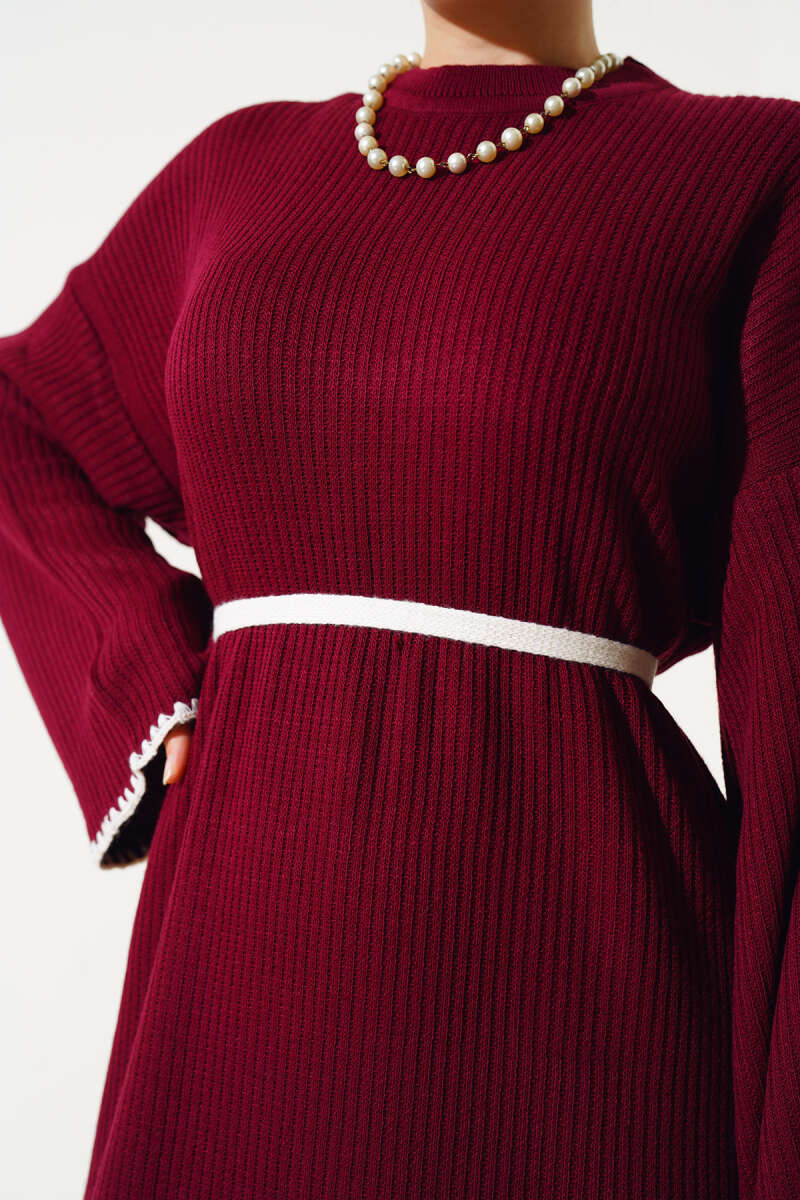 Balon Kol Kemerli Basic Elbise Bordo