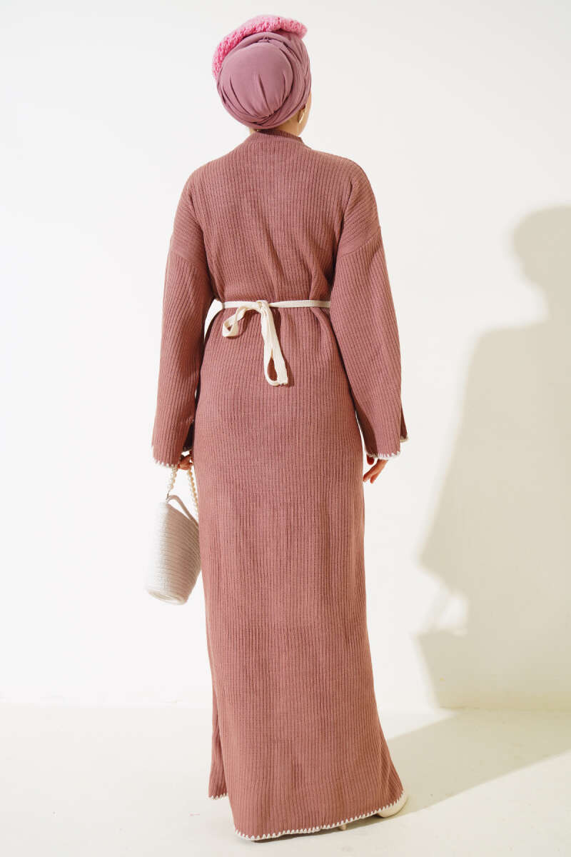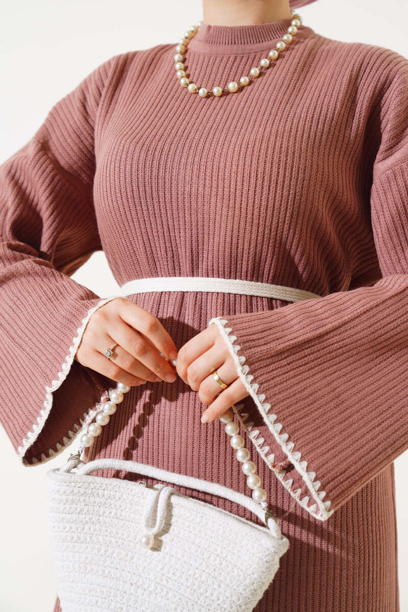Etek Ucu Fırfır Detaylı Triko Elbise Taş