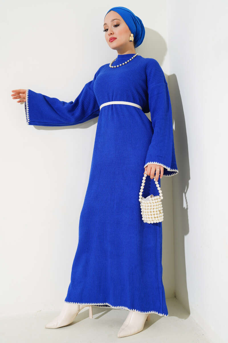 Kol Ucu Armalı İp Bağcıklı Elbise Kahve