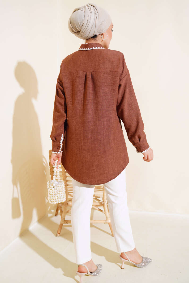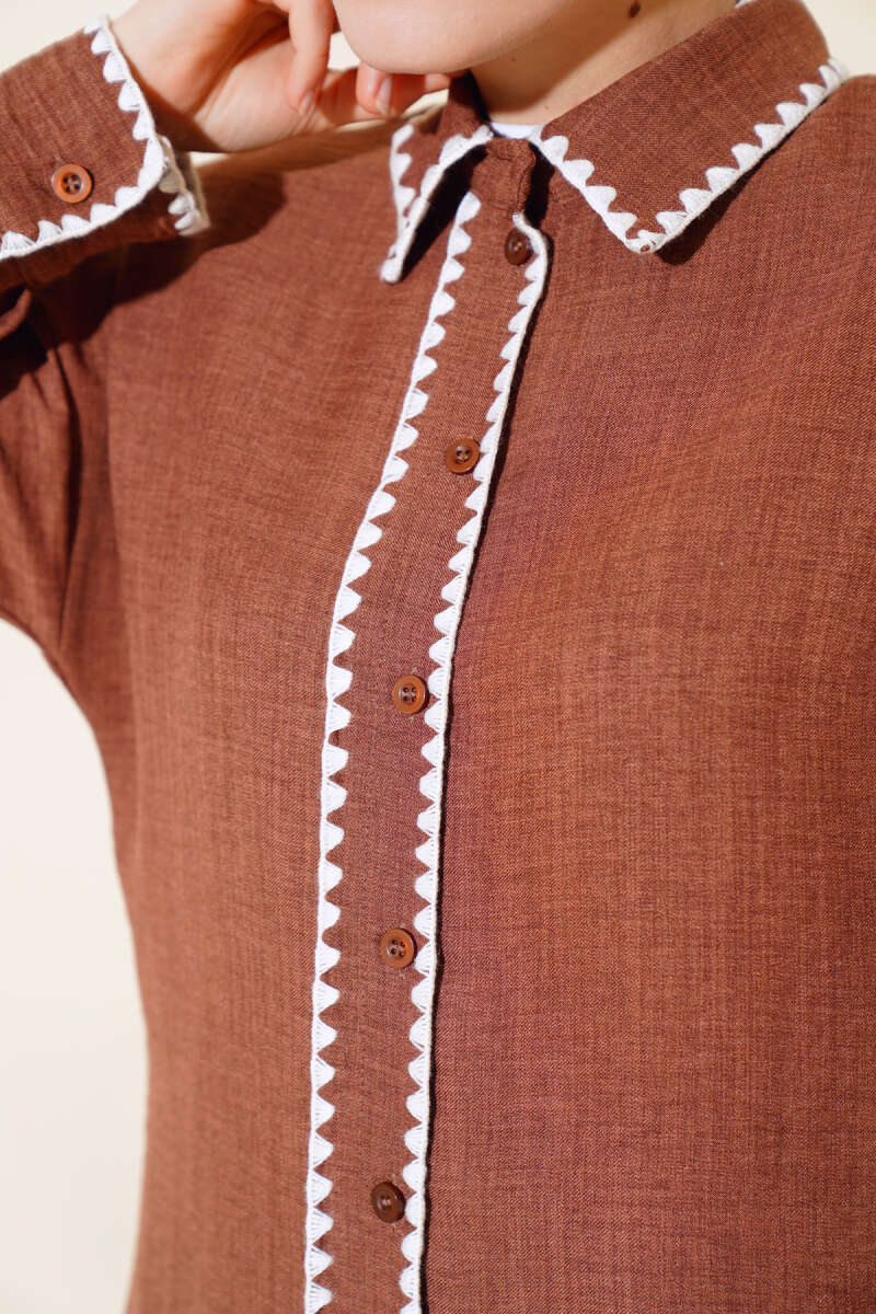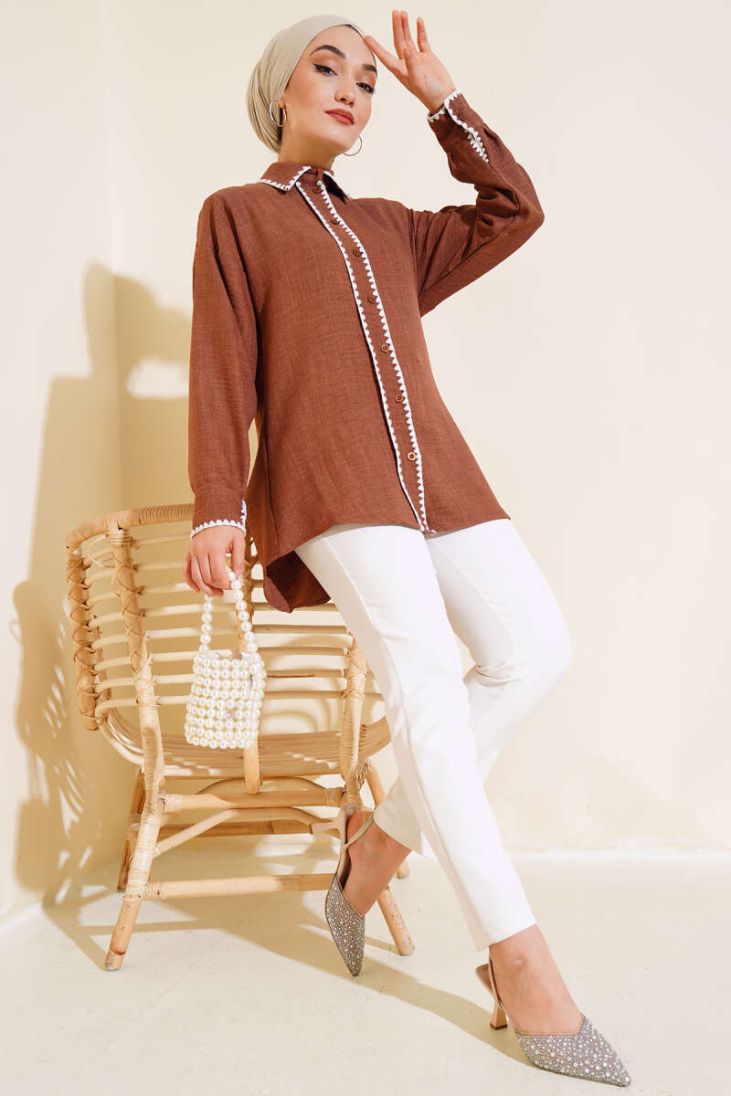 Yeni sezon gömleğimiz sizlerle beraber. Gömleğimizin önü boydan düğmelidir. Önü kısa arkası uzun modeldir. Gömleğimizin yakası, kol bilekleri ve önü midye dikişlidir. Gömleğimiz hem sportif hem şık kombinlerinize çok yakışacak.