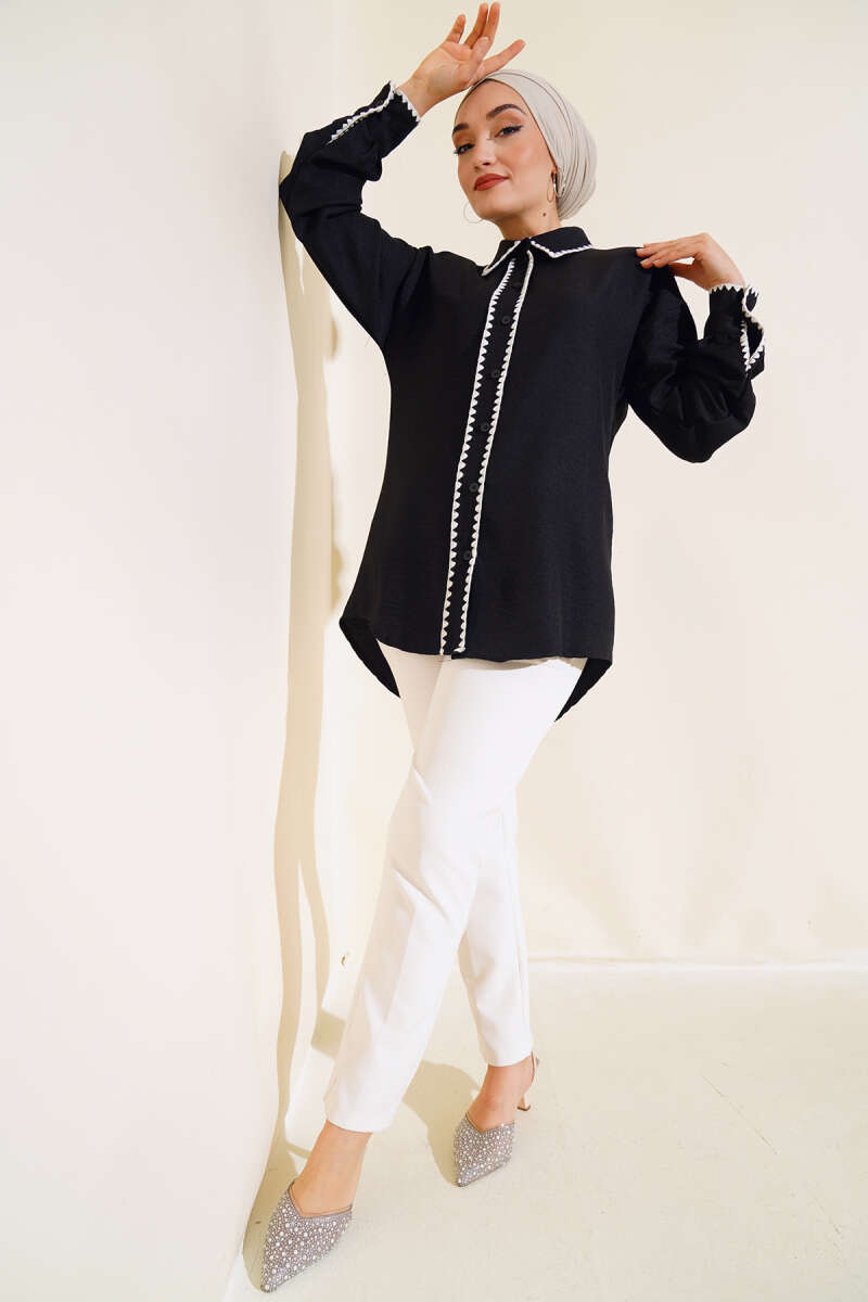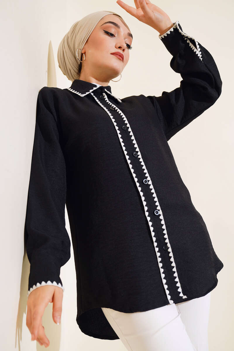 Yeni sezon gömleğimiz sizlerle beraber. Gömleğimizin önü boydan düğmelidir. Önü kısa arkası uzun modeldir. Gömleğimizin yakası, kol bilekleri ve önü midye dikişlidir. Gömleğimiz hem sportif hem şık kombinlerinize çok yakışacak.