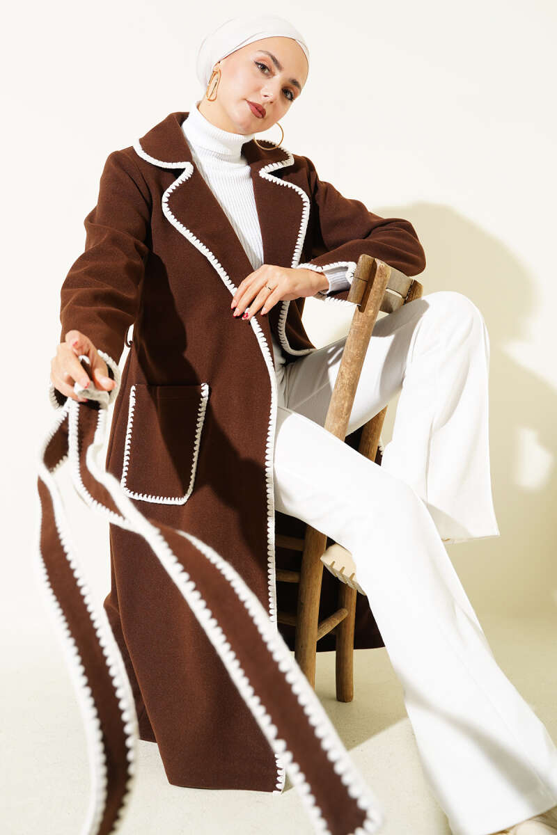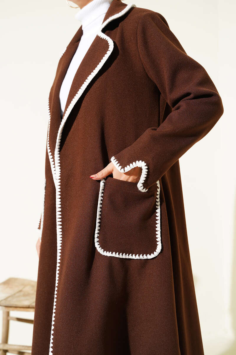 Bilek Apoletli Parçalı Kaşe Kaban Acı Kahve