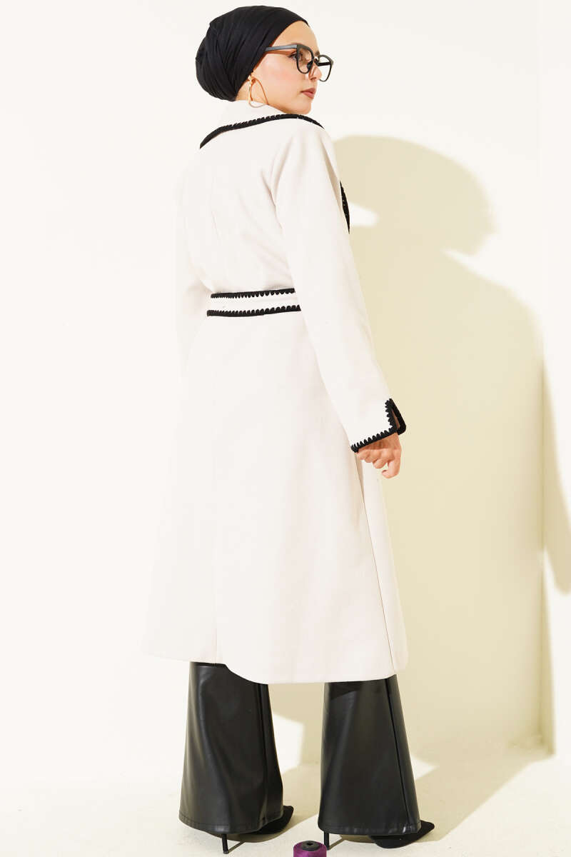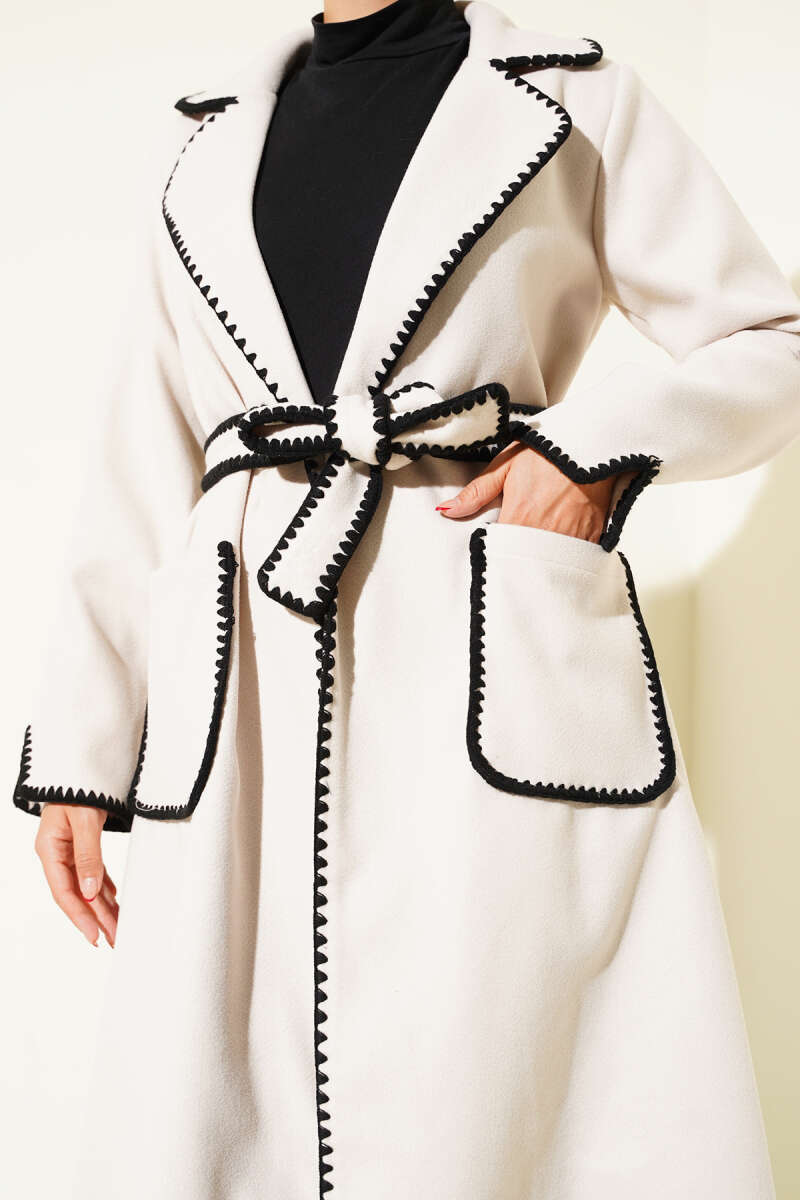 Midye Dikişli Kuşaklı Kaşe Kaban Taş