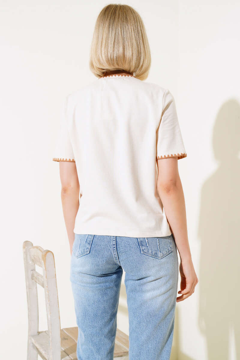Önü Pul Süslemeli Basic Gömlek Gül Kurusu