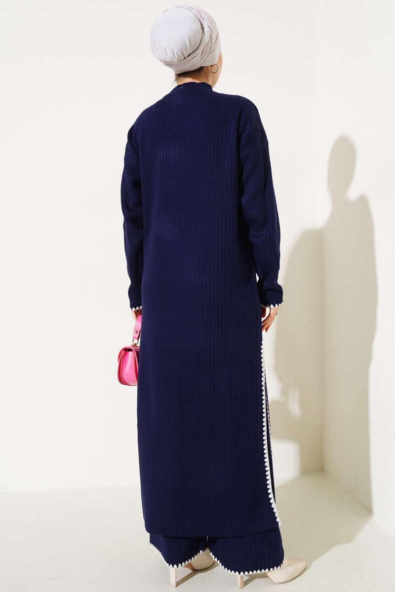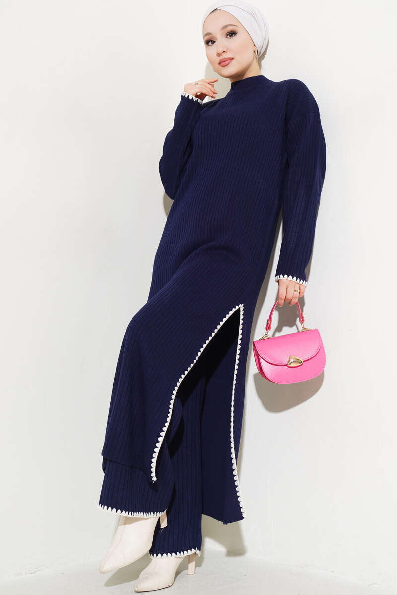 Çizgi Garnili Zımba Detaylı İkili Takım Lacivert